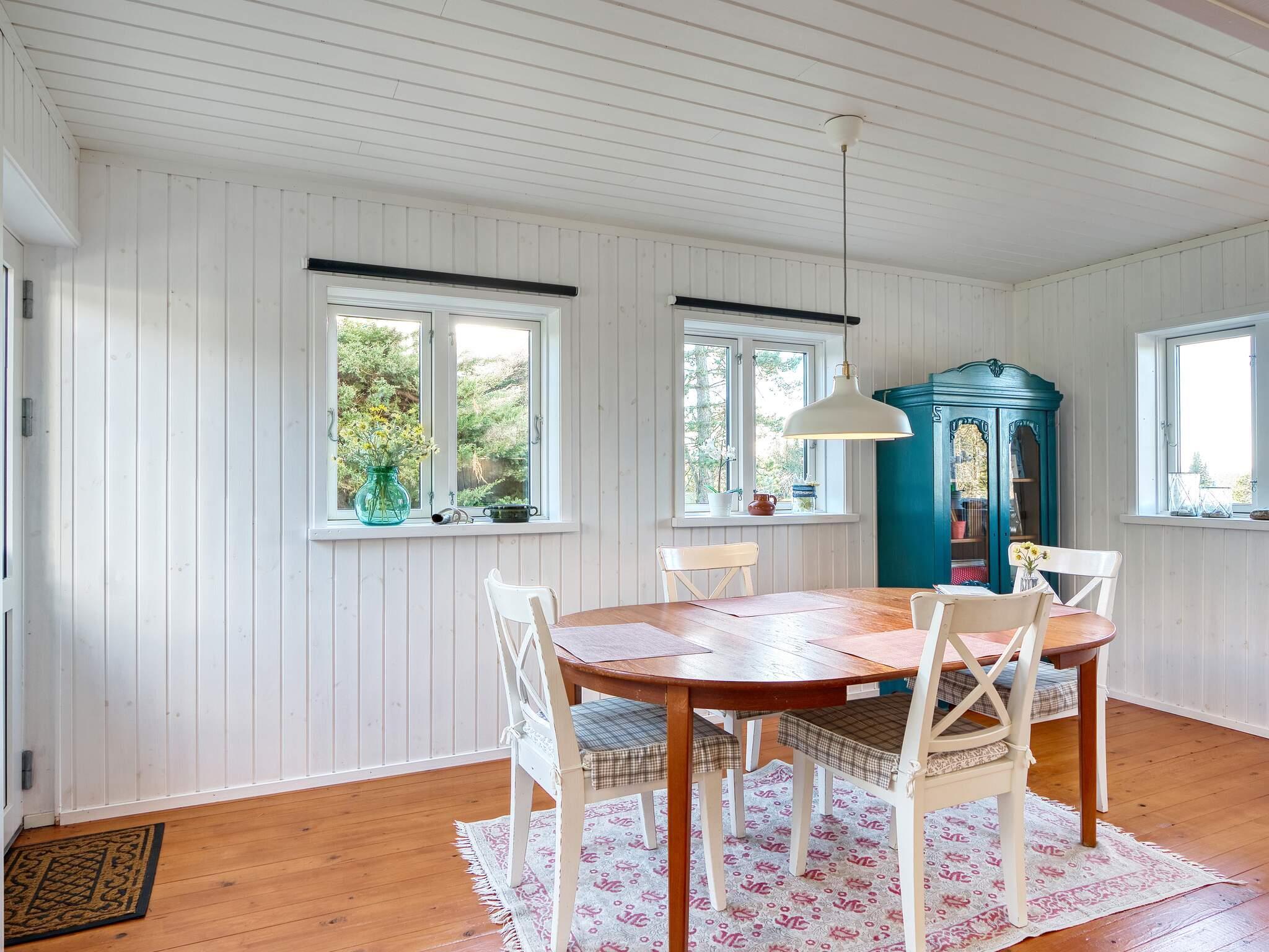 Dieses gepflegte Ferienhaus liegt auf einem erhöhten Grundstück im beliebten Ferienhausgebiet Vellerup und bietet einen wunderschönen Blick über den Fjord. Das ursprünglich 1975 erbaute Holzhaus wurde Ende 2020 umfassend renoviert und verbindet den Charme eines klassischen Ferienhauses mit modernem Komfort. Im Inneren erwartet Sie ein heller, offener Küchen- und Wohnbereich, der direkt auf die große Holzterrasse führt. Hier können Sie die Aussicht genießen, gemeinsam essen oder gemütliche Stunden im Freien verbringen. Das Wohnzimmer verfügt über einen Fernseher mit Chromecast und dänischen Sendern. Für eine erholsame Nachtruhe sorgen ein Schlafzimmer mit Doppelbett und ein zweites Zimmer mit zwei Etagenbetten und insgesamt vier Schlafplätzen – ideal für Familien mit Kindern. Das Haus verfügt außerdem über einen praktischen Hauswirtschaftsraum mit Waschmaschine und ein modernes Badezimmer.