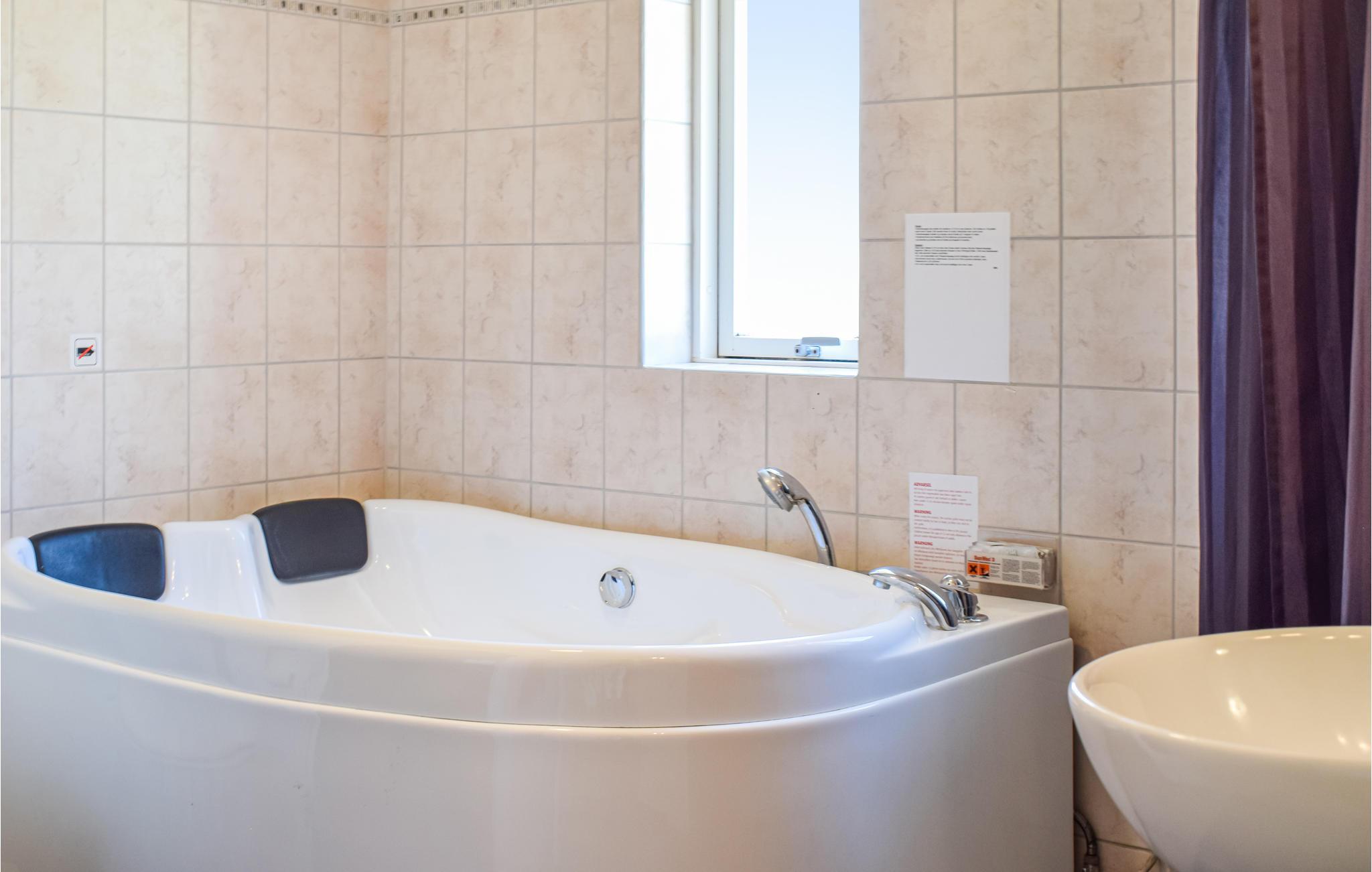 Im Gehabstand zum Fjord wohnen Sie hier in einer beliebten Ferienhaussiedlung in einem schönen Ferienhaus. Architektur und Möbel sind schön und die ganze Ausstattung ist dem Stil des Hauses angepasst. Vor dem Wohnbereich liegt die Terrasse. Die 4 Schlafzimmer sind 2 und 2 auf Flügel verteilt. Ein Badezimmer ist mit Whirlpool und Sauna ausgestattet. Auf dem Naturgrund haben Sie viel Platz für Spiele.