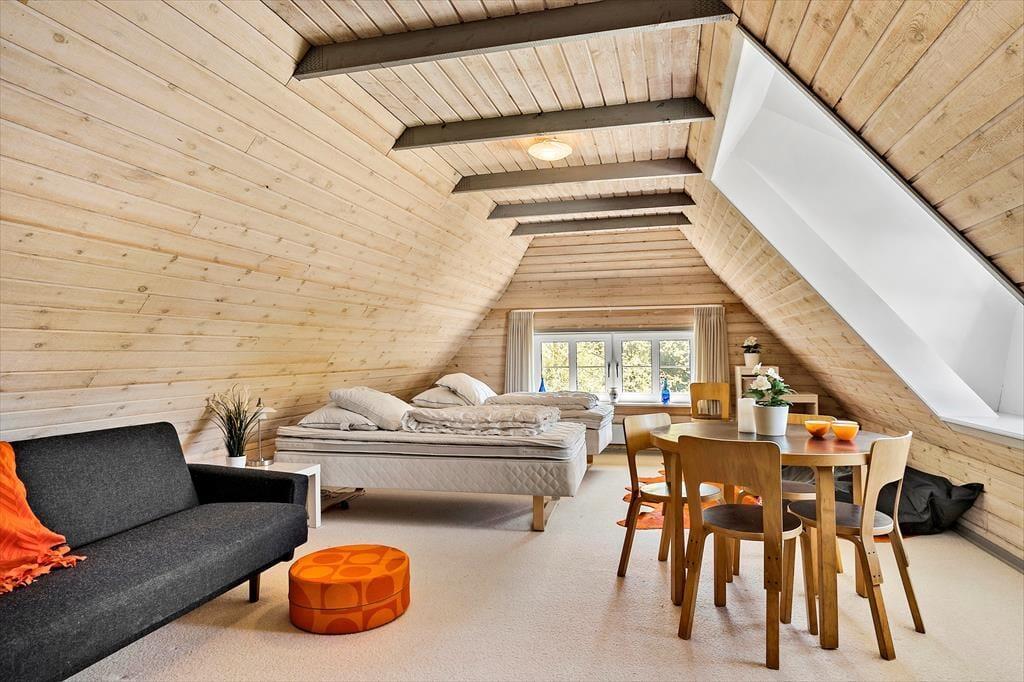 Tritt hinaus in den schönen Garten, der Groß und Klein gefällt. Während sich die Kinder auf der Schaukel vergnügen, kannst du in den Gartenmöbeln sitzen, eine Tasse Kaffee genießen, die Sonne im Gesicht spüren und die Ruhe auf dich wirken lassen. Die große Rasenfläche lädt zu Spaß mit der Familie und den Hunden ein, oder zu einem kleinen Fußballspiel. Mehrere schöne Terrassen rund um das Haus bieten euch die Möglichkeit, den ganzen Tag über Sonne oder Schatten zu finden – je nach Lust und Laune. Ob du den Morgen allein mit Vogelgezwitscher und frisch gebrühtem Kaffee genießen oder den Abend mit einem gemütlichen Essen vom Grill und Gelächter ausklingen lassen möchtest, während die Sonne den Himmel in warme Orangetöne taucht – hier entstehen die kleinen Momente, die man am längsten in Erinnerung behält. Es ist ein Ort zum Zusammensein und Abschalten.