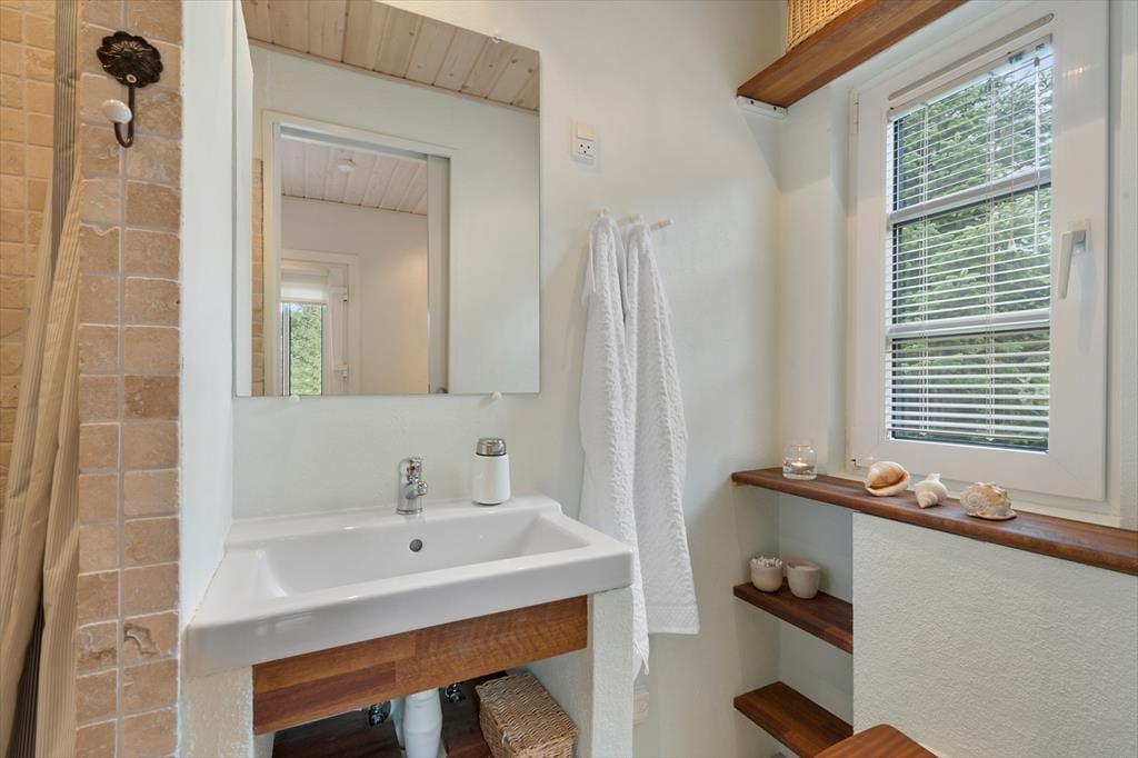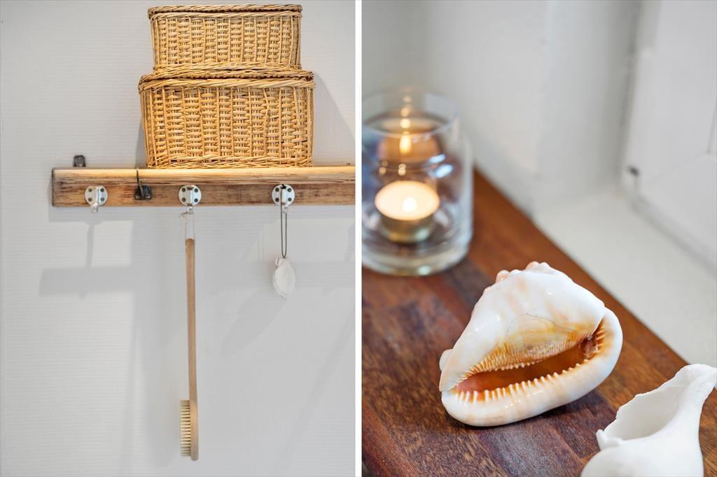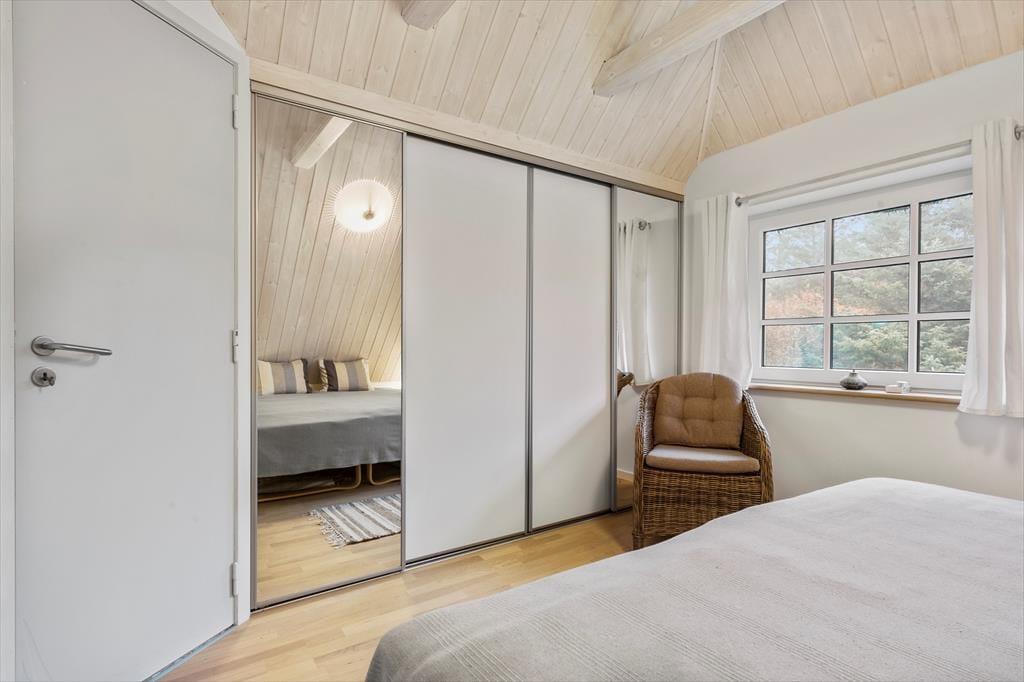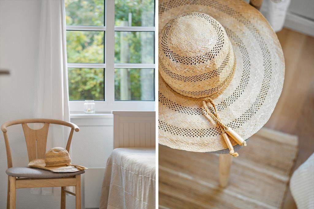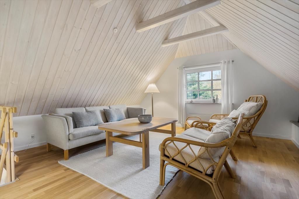 Im Obergeschoss gibt es reichlich Gelegenheit, nach einem schönen Tag voller Erlebnisse und Spaß zur Ruhe zu kommen. Im Wohnzimmer spürt man die Nähe zur wunderschönen Natur mit ihrer kleinen, feinen Strandfundsammlung und dem König des Waldes, der im Licht des halbmondförmigen Fensters erstrahlt.