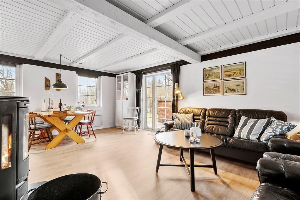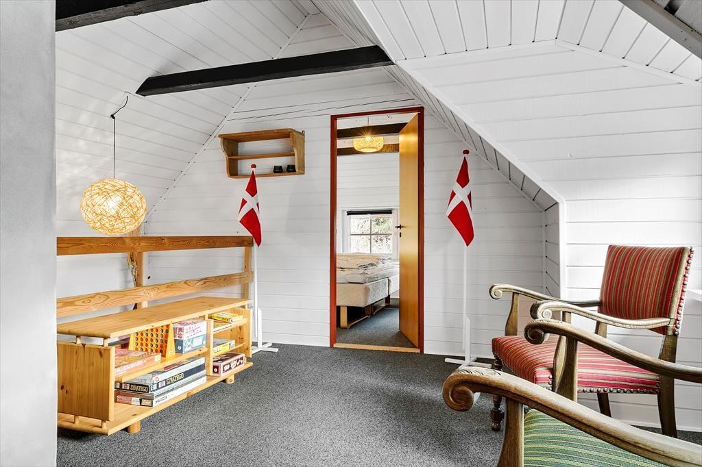 Wenn Sie durch die Tür treten, werden Sie von einem hellen und einladenden Ferienhaus begrüßt, in das große Fenster viel Tageslicht hereinlassen. Die offene Küche und das Wohnzimmer schaffen einen gemütlichen Rahmen für geselliges Beisammensein – hier können Sie die Gesellschaft des anderen genießen, während das Essen auf dem Herd köchelt. Das Haus verfügt über zwei Schlafzimmer, eines im Erdgeschoss und eines in der ersten Etage, sodass Sie die Möglichkeit haben, sich zurückzuziehen. Im Obergeschoss finden Sie außerdem ein zusätzliches Wohnzimmer, das auf Wunsch die Möglichkeit für Ruhe oder gemütliche Momente bietet. Zünden Sie den Kaminofen an und spüren Sie, wie die Wärme und der Schein der Flammen eine besondere Behaglichkeit im ganzen Haus verbreiten.