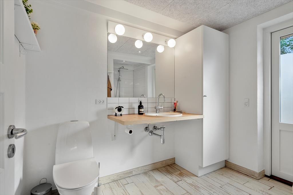 Das Haus liegt völlig privat, umgeben von Bäumen und offenen, mit Heide bewachsenen Flächen in der Vester Husby Klitplantage. Die große Holzterrasse, die das Haus vollständig umgibt, bietet euch zu jeder Tageszeit einen Platz mit Sonne oder Windschutz – perfekt für die morgendliche Tasse Kaffee oder ein Glas Wein in der Abendsonne. Von einem der Badezimmer gibt es einen direkten Zugang nach draußen, sodass der Raum auch als Außendusche genutzt werden kann – ein wunderbares Gefühl nach einem Strandbesuch oder einem Lauf durch die Plantage. Hier gibt es Platz für Entspannung und Geselligkeit unter freiem Himmel.