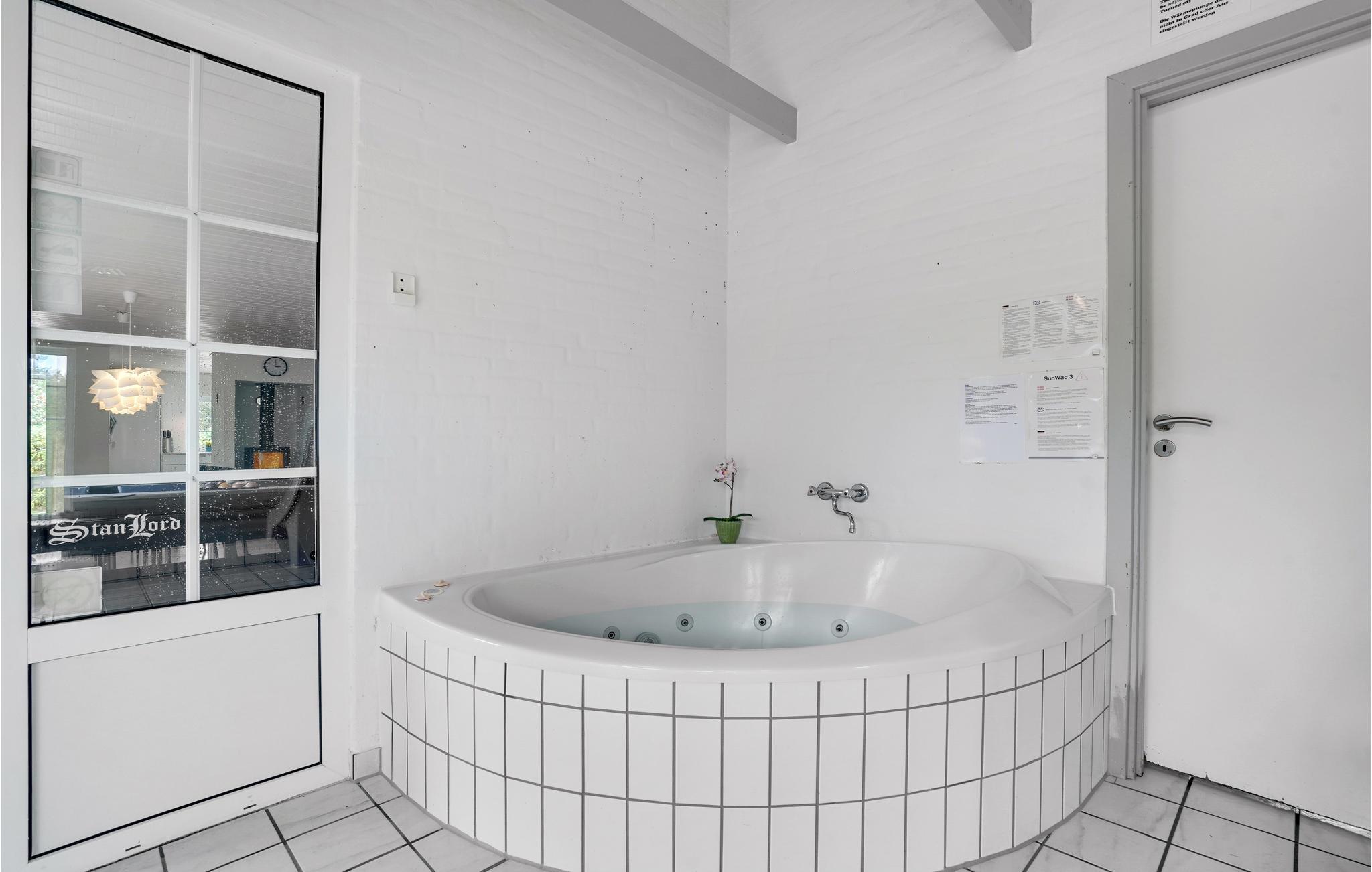 Dieses einladende und gepflegte Ferienhaus liegt in der ruhigen Ferienhaussiedlung Bækby, zwischen Husby und Vedersø Klit. Das Haus ist ausgestattet mit einer zum Wohnzimmer hin offenen und hellen Küche, dieser Raume bildet das Zentrum des Hauses. Zu seinen beiden Seiten liegt jeweils drei Schlafzimmer und ein Badezimmer. Im Wellnessbereich gibt es einen Pool mit Rutsche, Whirlpool, Sauna und ein Badezimmer. Die Umgebung des Hauses beherbergt auf vielen Kilometern Wander- und Radwege. Im Wald Husby Plantage gibt es auch behindertengerechte Wanderwege. Im artenreichen Wald gibt es auch 90 Jahre alte Nadelbäume. Der Hund der Familie freut sich sicher schon auf den Husby Hundewald, der nicht weit vom Haus liegt. Im Gebiet gibt es auch kleine Häfen, wo die Lokalbevölkerung ihre Boote liegen hat. Eine originale Urlaubsatmosphäre erleben Sie in Søndervig, in dieser Stadt können Sie auch in Fachgeschäften einkaufen und Freizeitsportangebote finden (Minigolf, Hallenbad, Sandskulpturen am Strand). Machen Sie auch einen Ausflug nach Thorsminde, das schön auf der Landzunge zwischen Meer und Fjord liegt. Der Hafen hat ein schönes Flair und von der Mole können Sie angeln. Hier liegt auch das Strandgutmuseum St. Georges. Wenn Sie abends zum Ferienhaus zurückkehren, können Sie auf der Terrasse die letzten Sonnenstrahlen genießen und sich hinterher vor dem knisternden Kaminofen versammeln.