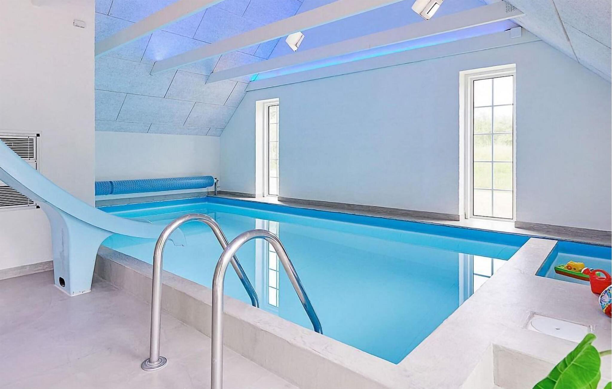 Ein unvergesslicher Ferienhausurlaub erwartet Sie in diesem luxuriösen Ferienhaus mit zahlreichen Aktivitätsmöglichkeiten und ganz viel Platz für Entspannung und wundervolle Urlaubsstunden. Lassen Sie den Alltag hinter sich und freuen Sie sich auf ausgiebige, gemeinsame Mahlzeiten an dem langen Esstisch, auf gemütliche Gespräche in der gemütlichen Sofalandschaft am knisternden Kaminofen und entspannte Momente im Whirlpool. Gleiten Sie begleitet von Ihrer Lieblingsmusik und -licht die Wasserrutsche hinab in den Pool und gönnen Sie sich auch einen Saunagang, der Körper und Geist guttut. Ihre Kinder können sich im flachen Kinderpool vergnügen. Ermitteln Sie am Billardtisch den Urlaubsmeister im Poolbillard und gehen Sie anschließend hinaus auf die geräumige Terrasse mit den zahlreichen Sitzmöglichkeiten, die zum Relaxen einladen.