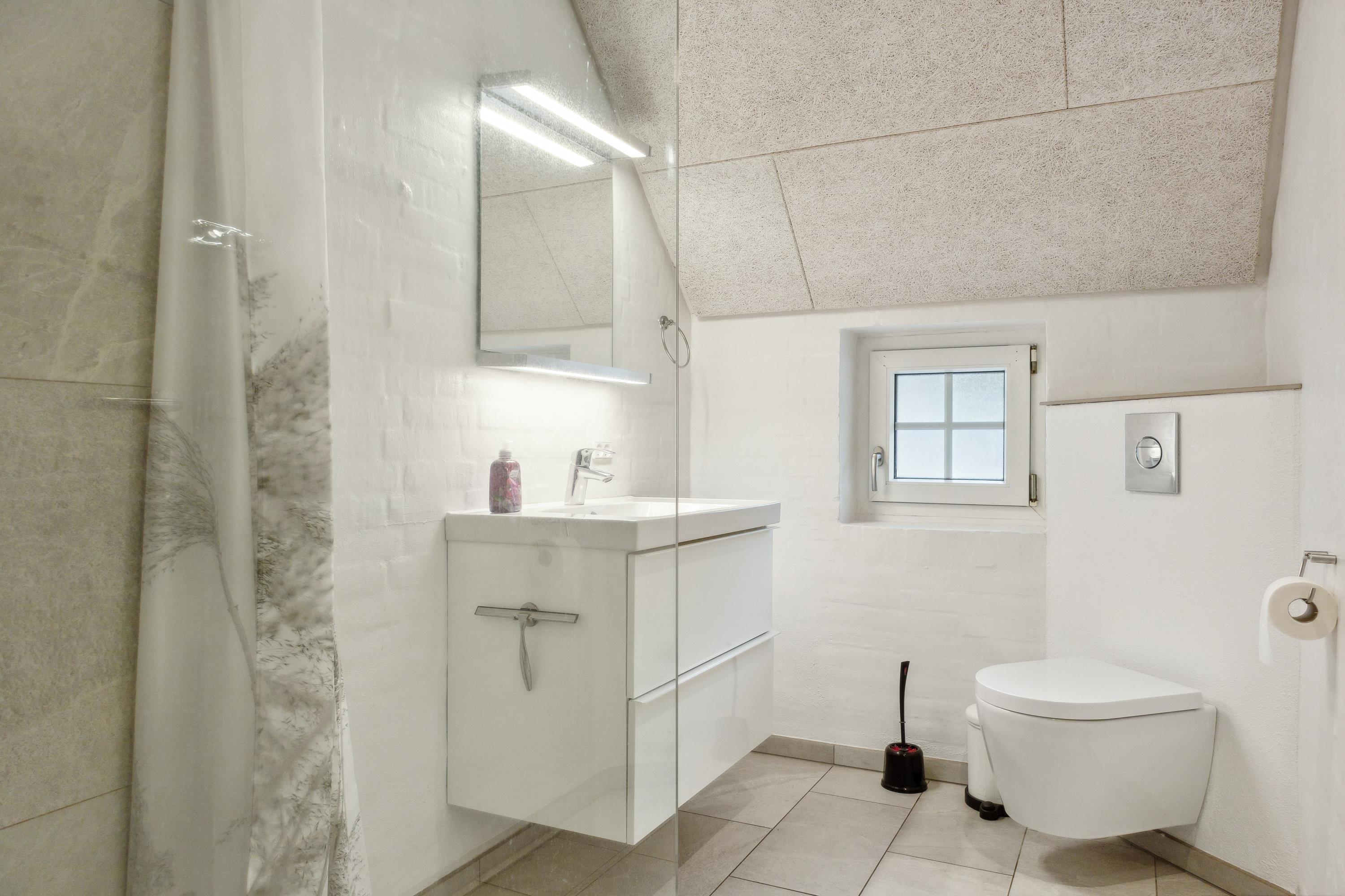 Das Haus ist perfekt für zwei große Familien geeignet, weil es zwei getrennte Flügel mit eigenen Schlafbereichen hat. Jeder Abschnitt hat drei Zimmer, zwei mit je einem Doppelbett und eines mit einem Etagenbett plus Einzelbett. In allen Zimmern habt ihr viel Stauraum und Schrankplatz. In beiden Abteilungen gibt es schön renovierte Bäder mit Duschen und Fußbodenheizung. Das Herz des Hauses ist das Wohnzimmer. Mit dem großen Esstisch, einem guten Kaminofen und einer schönen Sofagruppe mit Fernseher ist viel Platz und Hygge für alle. Es gibt auch einen direkten Zugang zur gut ausgestatteten, offenen Küche und zur Terrasse. Im großzügig geschnittenen Eingangsflur habt ihr viel Platz für Jacken, Sportzeug und Schuhe und im kleinen Hauswirtschaftsraum findet ihr Waschmaschine und Trockner.