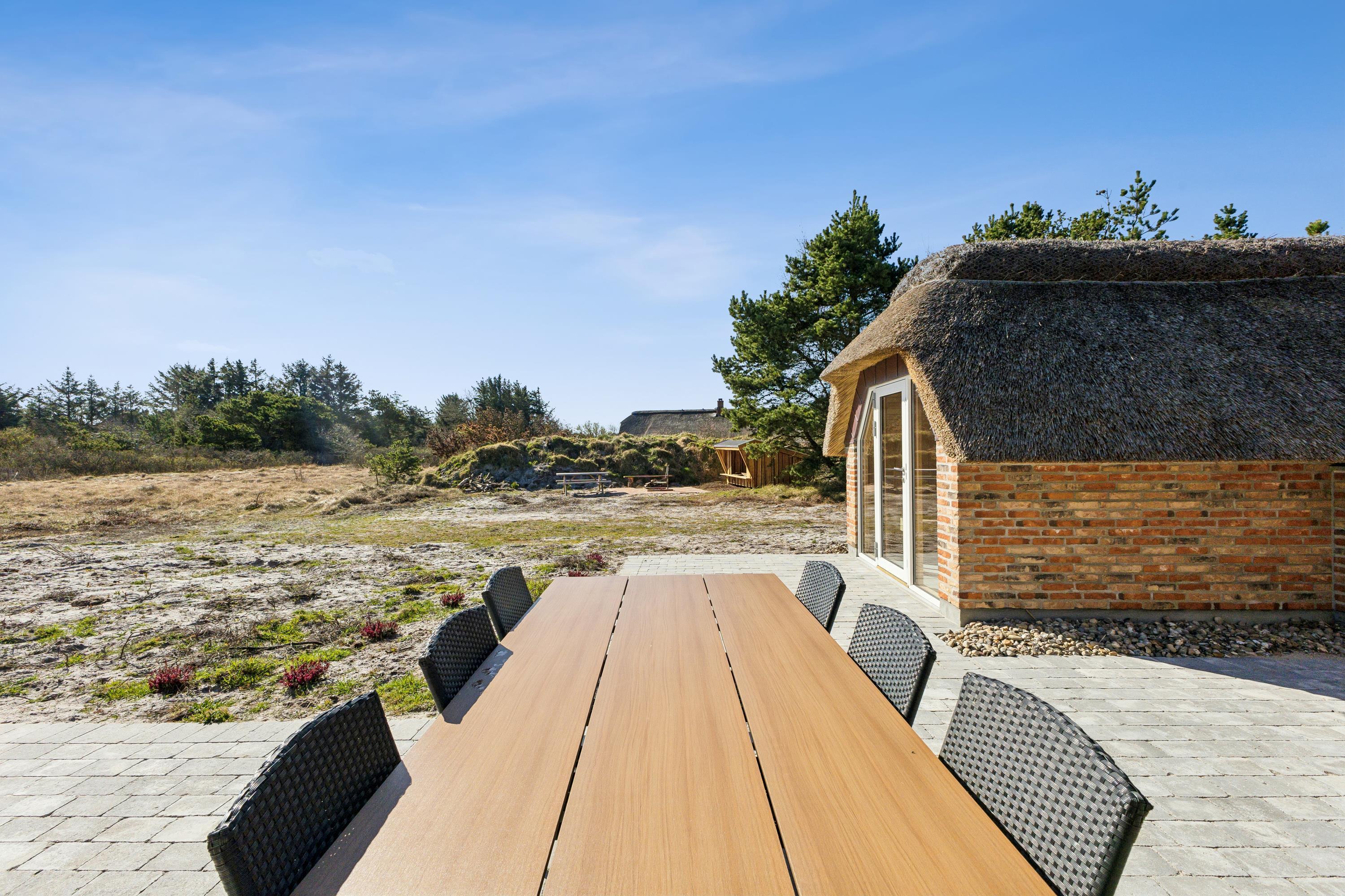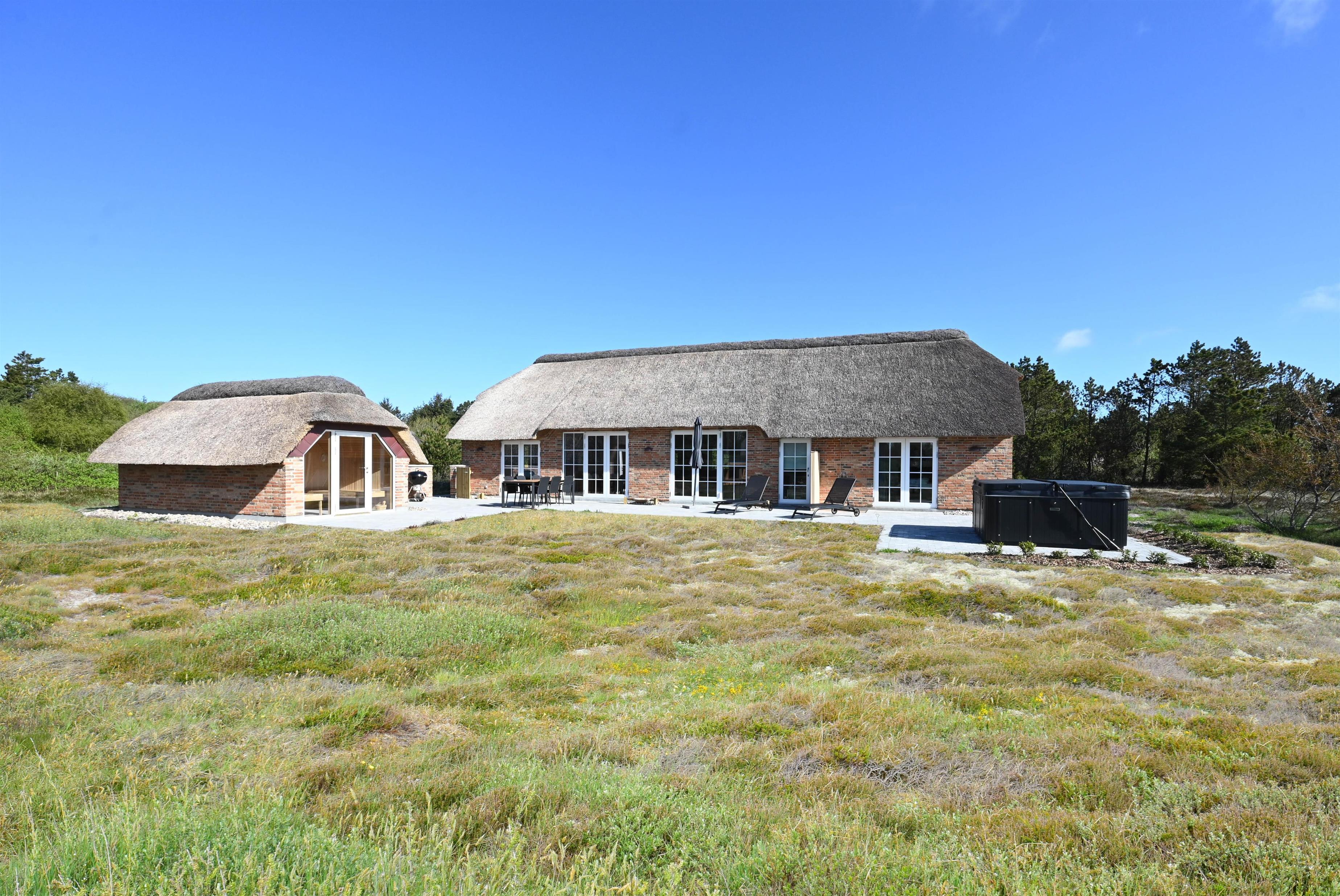 Dieses ganz besondere, im Jahr 2025 gebaute, Ferienhaus liegt auf einem wunderschönen Naturgrundstück. Natürlich ist es, wie die Regeln in dieser Region es vorschreiben, gemauert und mit einem Reetdach versehen. Von der herrlichen Südterrasse aus habt ihr Zugang zum Saunahaus mit seinen großen Fenstern. Probiert, wie es ist, in der Wärme zu sitzen und in den Sternenhimmel zu schauen. Natürlich könnt ihr den Nachthimmel auch aus dem blubbernden Außenwhirlpool mit feinen Massagedüsen genießen – ihr habt die Wahl.