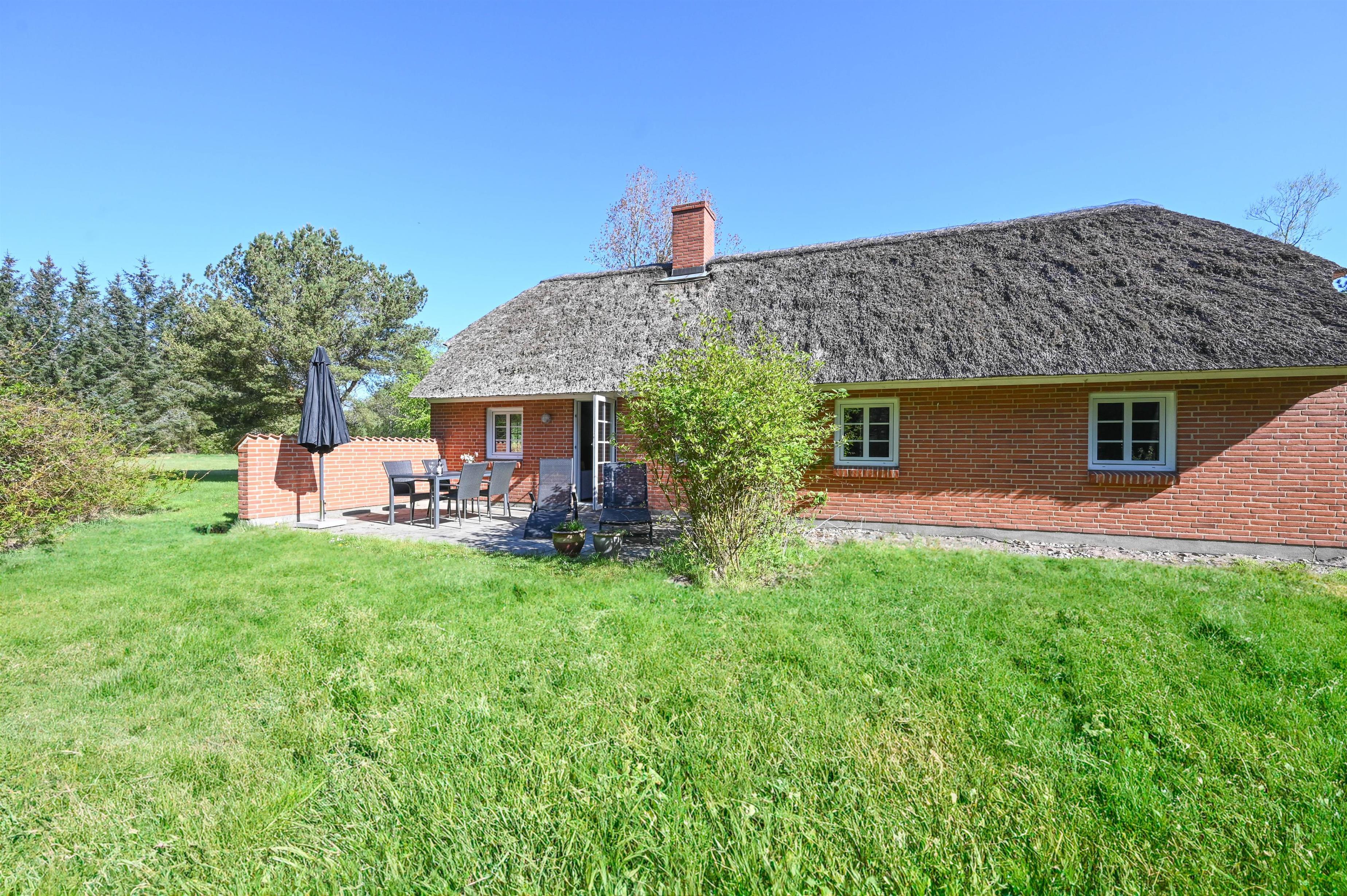 Auf einem wunderschönen 5.000 m² großen Naturgrundstück, umgeben von Bäumen, Wiesen und der Ruhe der westjütischen Landschaft, liegt dieses gemütliche Ferienhaus aus roten Backsteinen mit klassischem Reetdach – ein echtes dänisches Ferienhaus mit Charme und Atmosphäre.