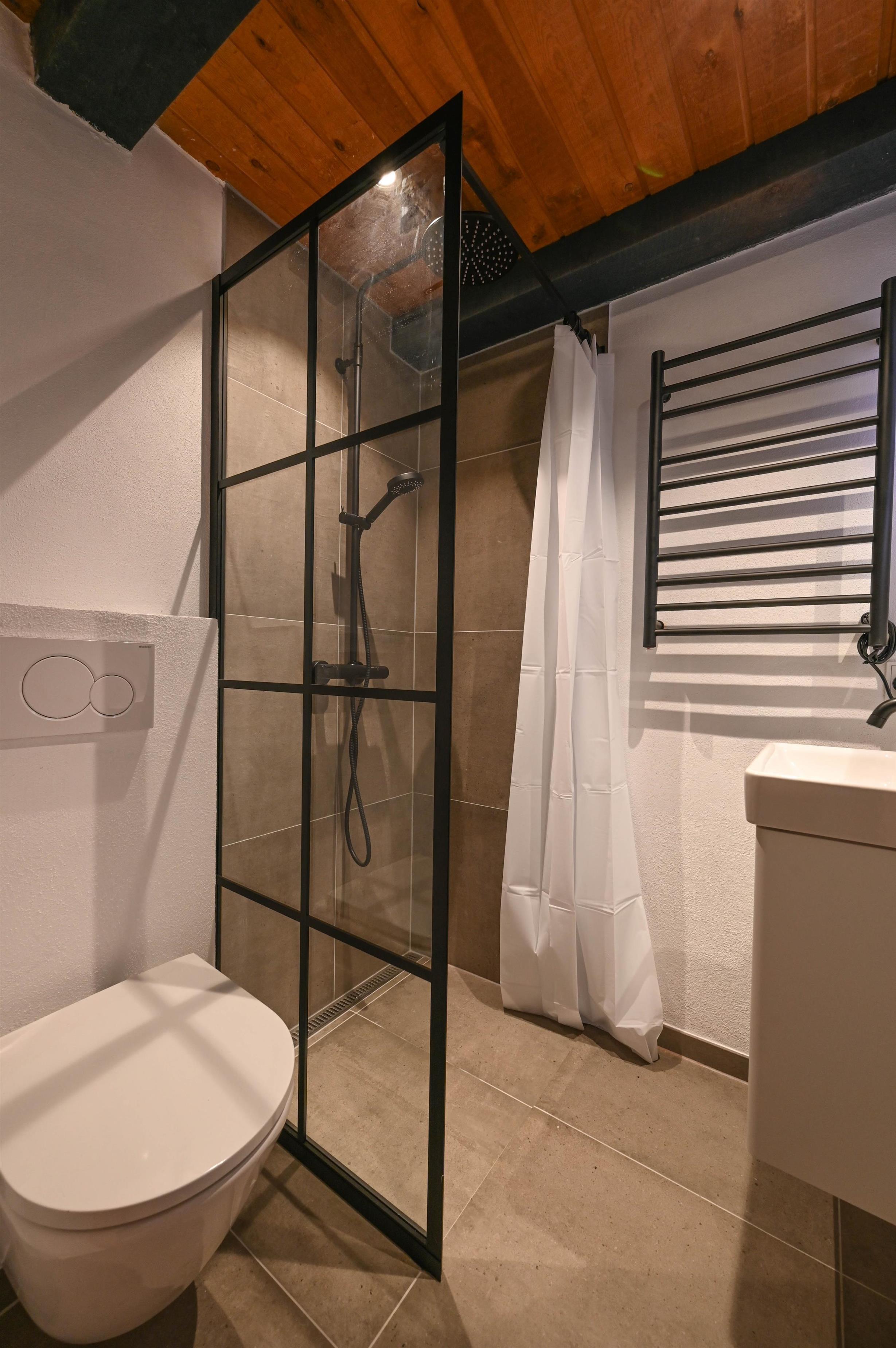 Großes Badezimmer mit Dusche, Whirlpool und Sauna