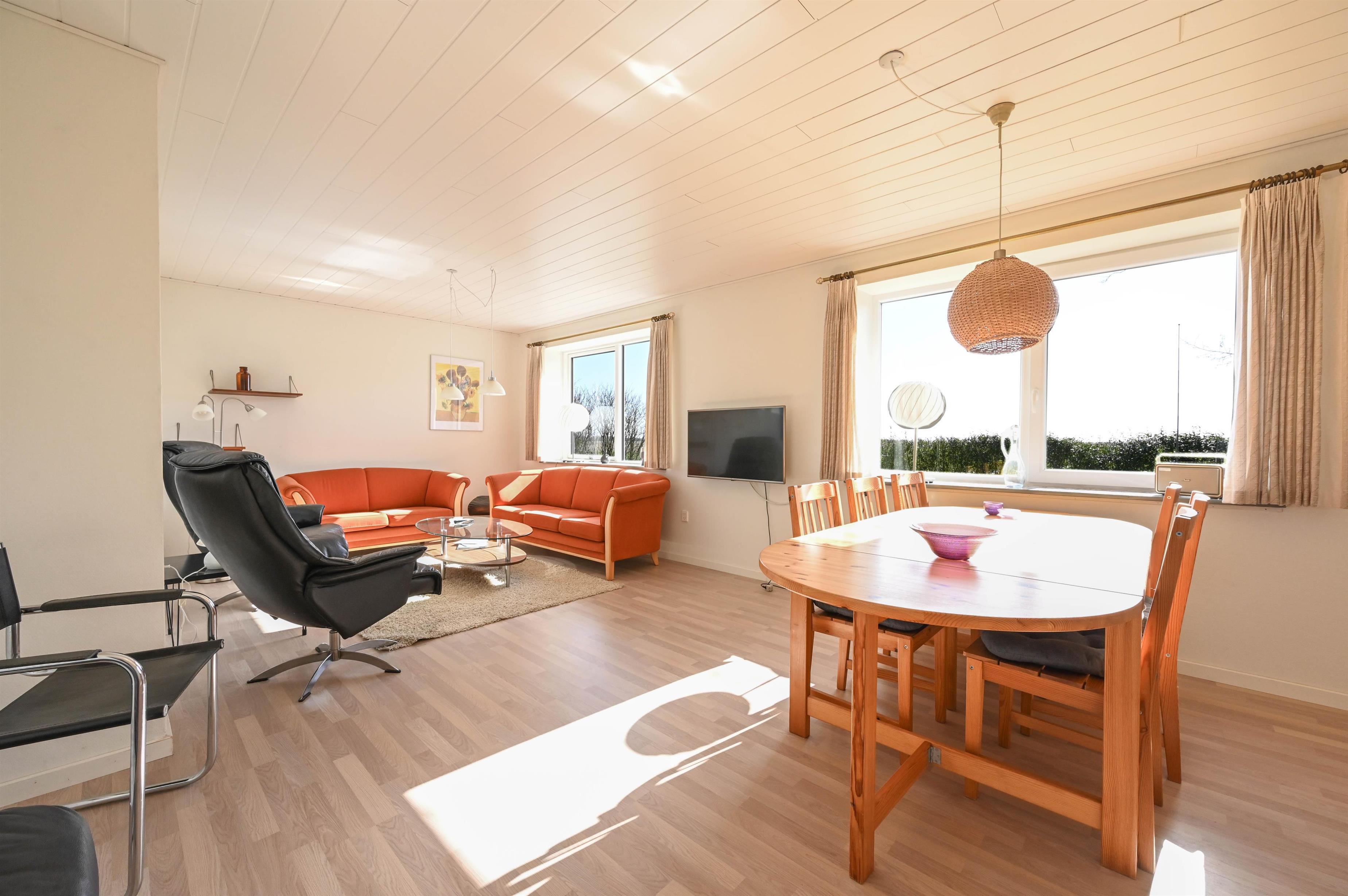 Einmal wohnen wie die Dänen? Auf dem Land und nicht in einer Ferienhaussiedlung? Das könnt ihr hier ausprobieren. Ihr wohnt in der alten Schule, die 1920 erbaut und 2020 renoviert wurde. Hier hinter dem Vest Stadil Fjord habt einen schönen Blick über die weiten Felder. Ihr seid direkt am Radweg, der nach Søndervig (Nr. 1) und herrlich am Fjord entlang bis nach Ringkøbing (Nr. 4) führt. Die Umgebung eignet sich hervorragend für gemütliche Spaziergänge mit dem Hund oder eine lange Wanderung am Vest Stadil Fjord mit seinem reichen Vogelleben. Das Haus mit 123 qm Wohnfläche liegt in einem schönen geschlossenen 1.930 qm großen Garten, der in der Dämmerung oft von Rehen besucht wird.