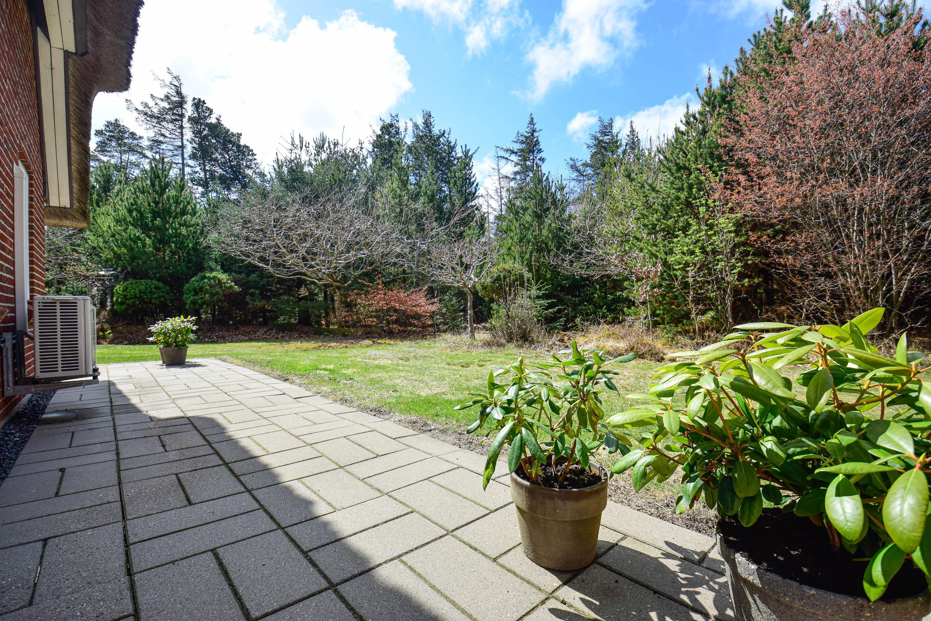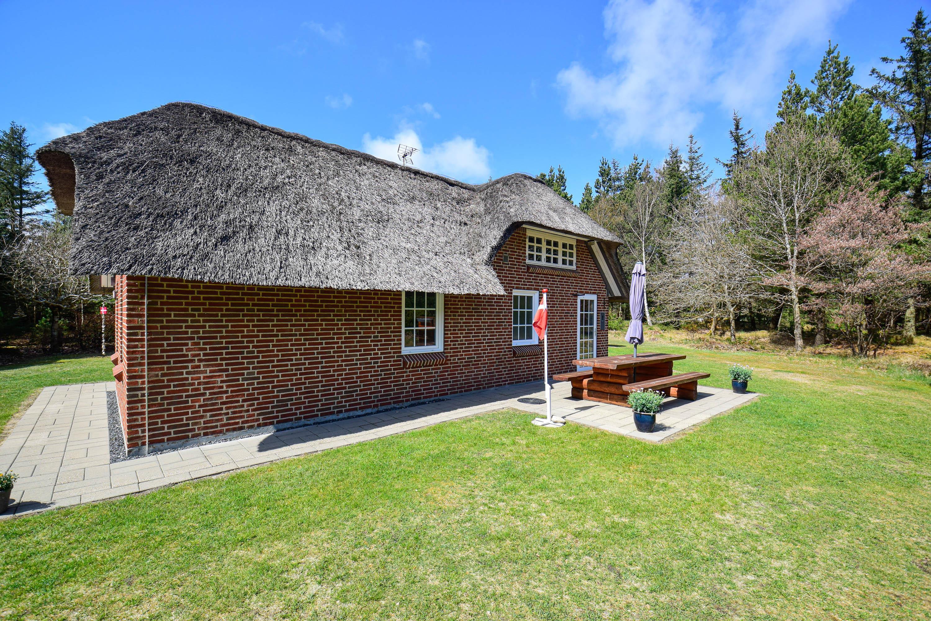 Am Ende einer ruhigen, abgeschiedenen Seitenstraße, umgeben von Bäumen und Sträuchern, liegt dieses gemütliche Ferienhaus mitten in der westjütländischen Natur.