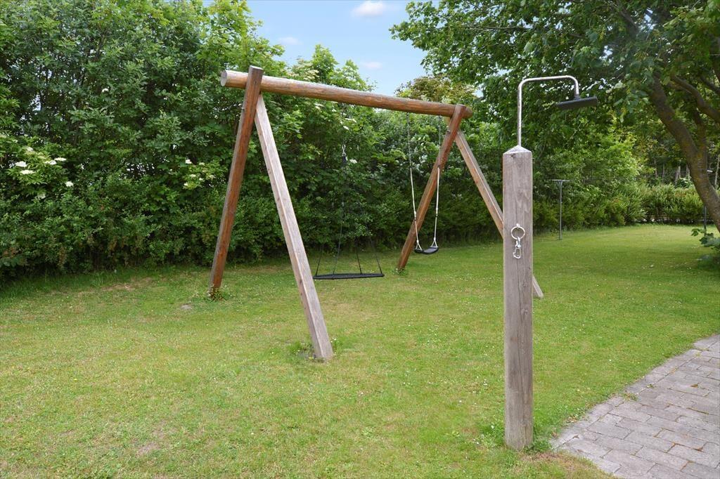 hier bietet das Ferienhaus einen großen, geschlossenen Garten – ideal zum Spielen, Entspannen und für lange Sommertage. Mit Spielgeräten und einer Außendusche kann die Familie sonnige Tage und kühle Abende draußen genießen. Ob ihr euch im warmen Wildnisbad unter dem klaren Sternenhimmel entspannt oder mit den Hunden im angebauten Hundegehege spielt, die Außenanlagen geben allen die Möglichkeit, unvergessliche Ferienerinnerungen zu schaffen.