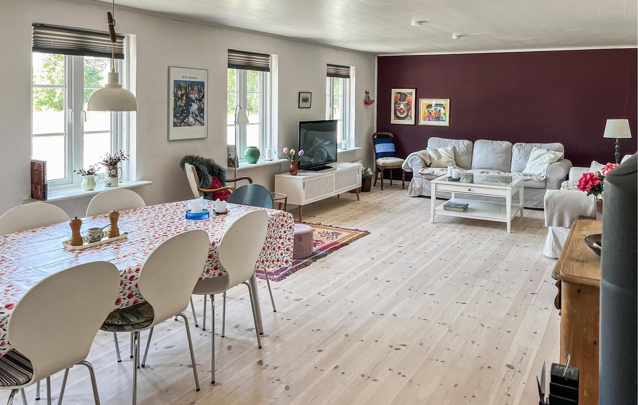 Dieses geräumige und liebevoll eingerichtete Ferienhaus begrüßt Sie mit einer freundlichen Atmosphäre und viel Platz für harmonische Tage mit Ihren Liebsten. Zaubern Sie hier leckere Gerichte und nehmen Sie im offenen Wohnraum Platz. Entfachen Sie nach einem langen Tag an der frischen Seeluft den Kamin, nutzen Sie den großen Esstisch für einen fröhlichen Spieleabend oder kuscheln Sie sich für einen spannenden Film auf das Sofa.