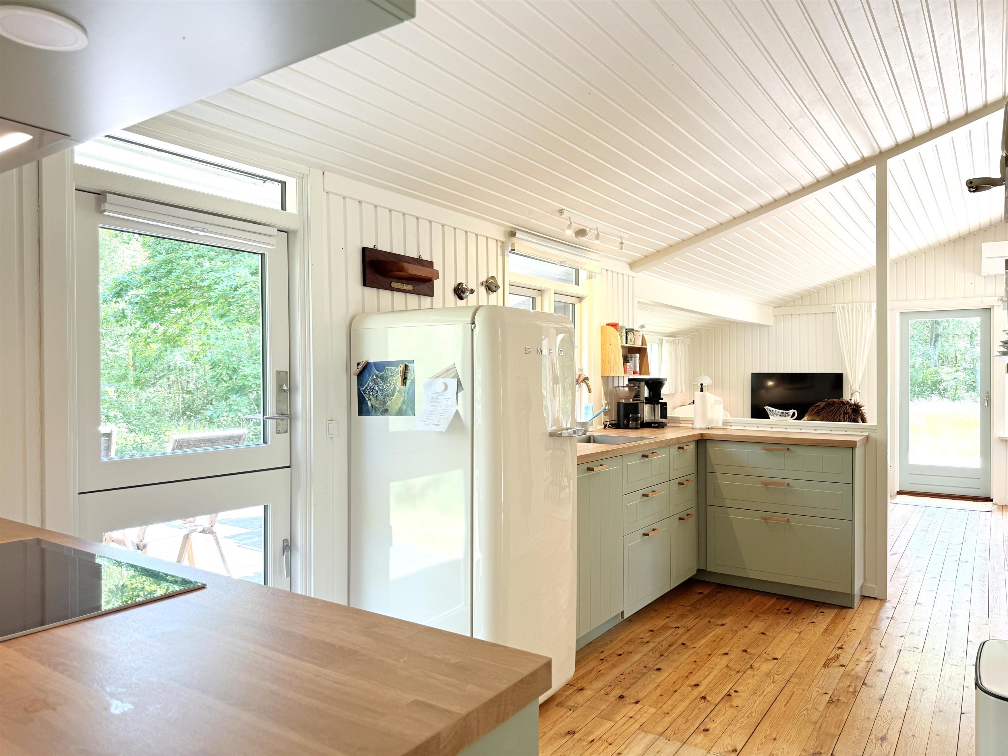 Neu bei Team Læsø. Schönes, gepflegtes Ferienhaus in naturschöner Lage und nur wenige Gehminuten vom vielleicht schönsten Strand der Insel, dem Kongestranden, entfernt. Sobald Sie das Haus im Cypresvej 5 betreten, spüren Sie sofort die richtige Sommerhausatmosphäre. Die Wohnküche verfügt über eine schöne, neue Küche mit gemütlicher Sofaecke und einen schönen, hellen Raum mit mehreren Ausgängen zur neuen, großen Holzterrasse. Das Haus hat drei Schlafzimmer, eines mit Doppelbett und zwei mit geräumigen Einzelbetten. Ein schönes Badezimmer mit Dusche. Das Haus liegt auf einem schönen, großen Naturgrundstück, und auf einer der Terrassen finden Sie immer ein Sonnenplätzchen. Ein schöner Gasgrill und mehrere Gartenmöbel stehen zur Verfügung. Südlich und mit dem Fahrrad erreichbar liegt das fantastische Naturgebiet mit der Sandbank Stokken. Hier können Sie durch das flache Wasser waten und am kinderfreundlichen weißen Sandstrand schwimmen. Ca. 2,5 km zum gemütlichen Hafen von Vesterø mit Restaurants, Fischhändlern und guten Einkaufsmöglichkeiten.