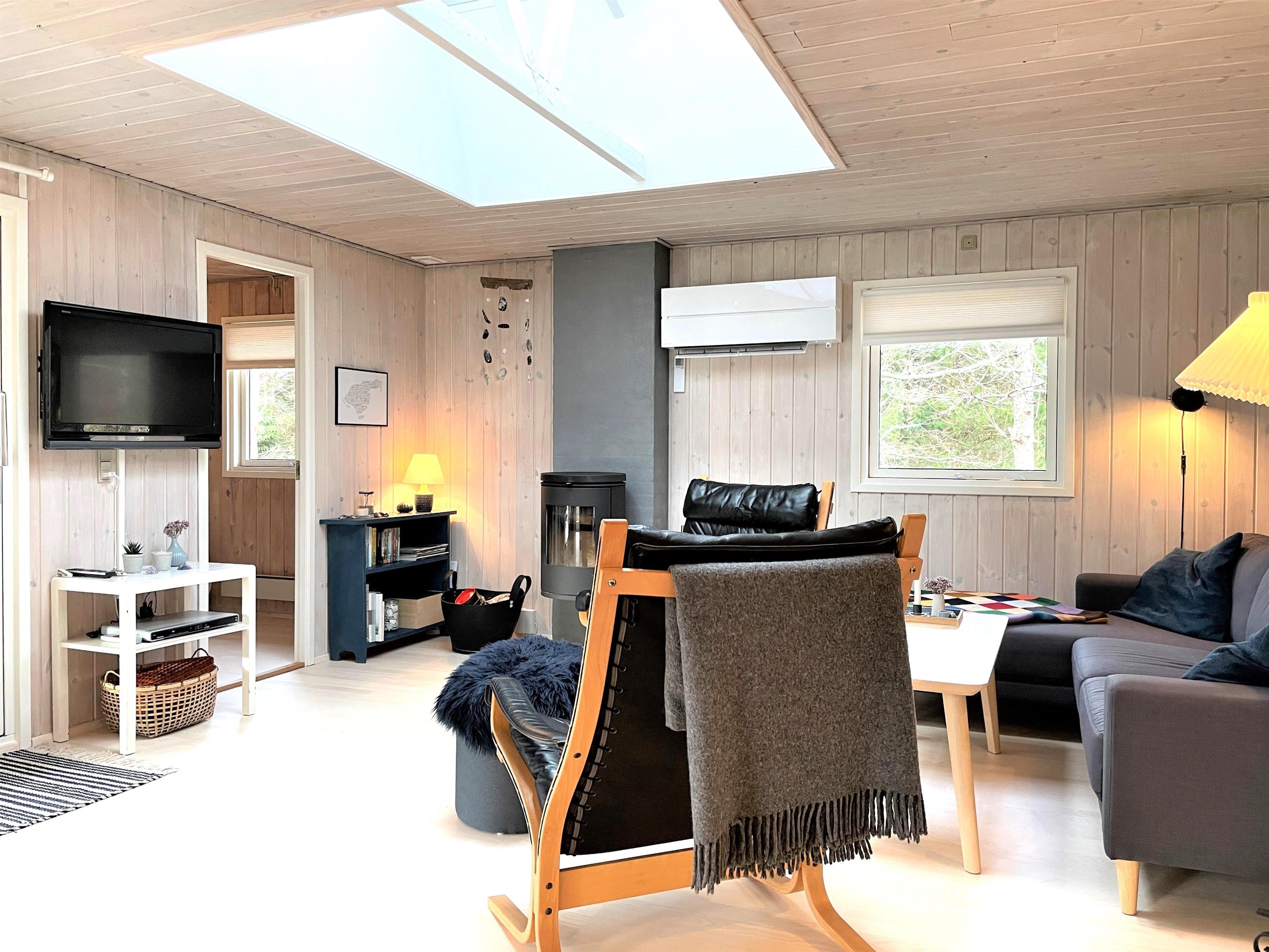 Ein richtig schönes neu renoviertes Sommerhaus, an einer ruhigen Seitenstrasse zum Kongevejen und Kongestranden, eines der schönsten Bade-Strände auf Læsø. Das Haus hat eine gut ausgestattete Küche, in Verbindung mit einem gemütlichen Essplatz. Drei gute Schlafzimmer, wo zwei mit Doppelbett, und eines mit Hochbett ausgestattet ist. Ein ganz neues Badezimmer mit Bodenheizung. In diesem Haus vernimmt man schnell die geschmacksvolle Einrichtung, und wo man die Möglichkeit hat vollkommen abzuschalten. In der Stube hat es grosse Dachfenster die viel Licht ins Haus lassen. Zudem haben sie von der Stube einen direkten Ausgang zur schönen 50 kvm grossen Holzterasse, wo sich mehrere Sets mit behaglichen Gartenmöbeln befinden, und der Grill schaft eine gemütliche Sommerhausatmosphäre. Schöner Unterstand zur Nutzung. Hier kann auch der Terrassenheizer zum Einsatz kommen. Schöner Unterstand auf dem Gelände und Außendusche.