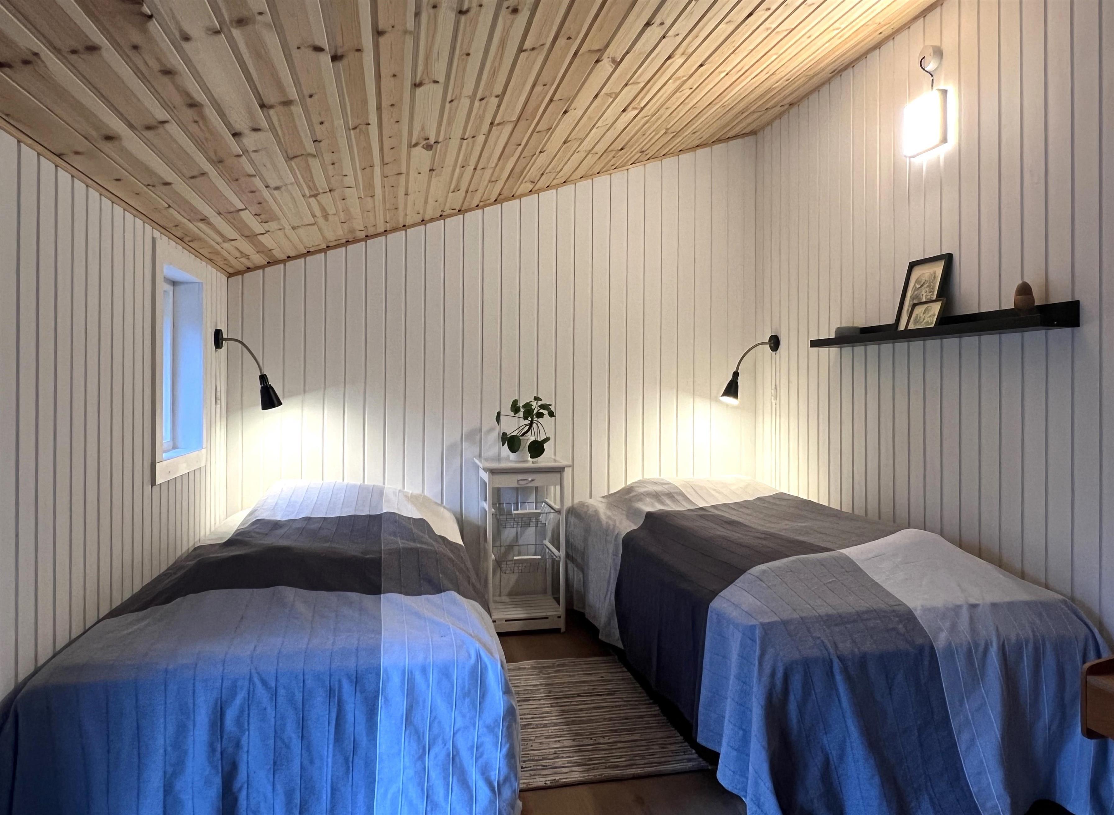 Schönes Ferienhaus, neu renoviert im Jahr 2023. Das Haus verfügt über eine schöne moderne Küche, offen zu einem geräumigen, gemütlichen Wohnzimmer mit Essbereich, Holzofen und Sofaecken. Zwei schöne Schlafzimmer, eines mit Doppelbett und eines mit 2 Einzelbetten. Schönes Badezimmer mit Dusche. Das Haus verfügt außerdem über eine praktische Nutzküche, in der frischer Fisch und Schalentiere zubereitet werden können.