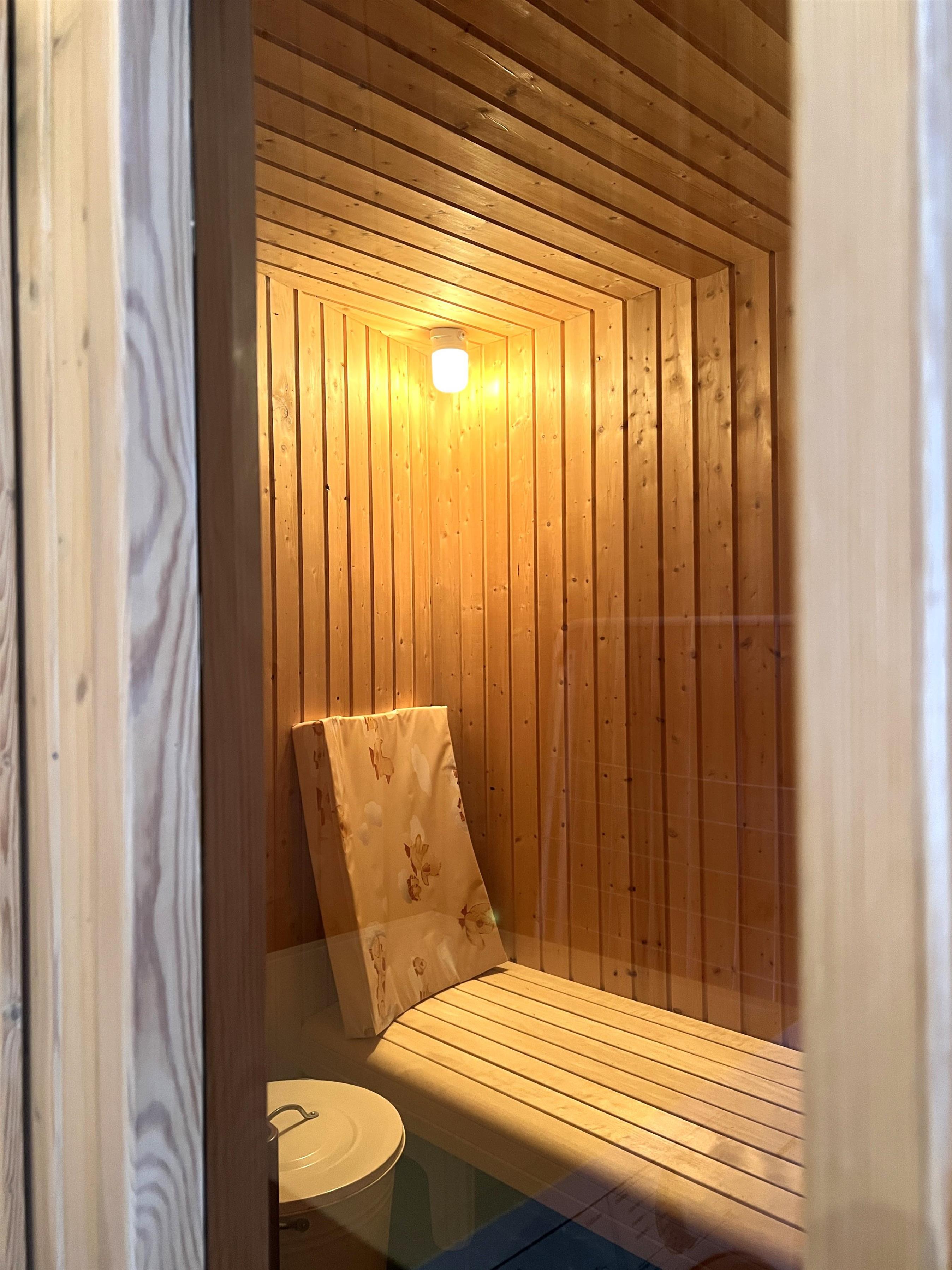 Im Erdgeschoss gibt es 3 Schlafzimmer, alle mit Doppelbett. Eine grosse Stube mit Sofa und TV. Grosses Badezimmer mit Sauna und Spa.