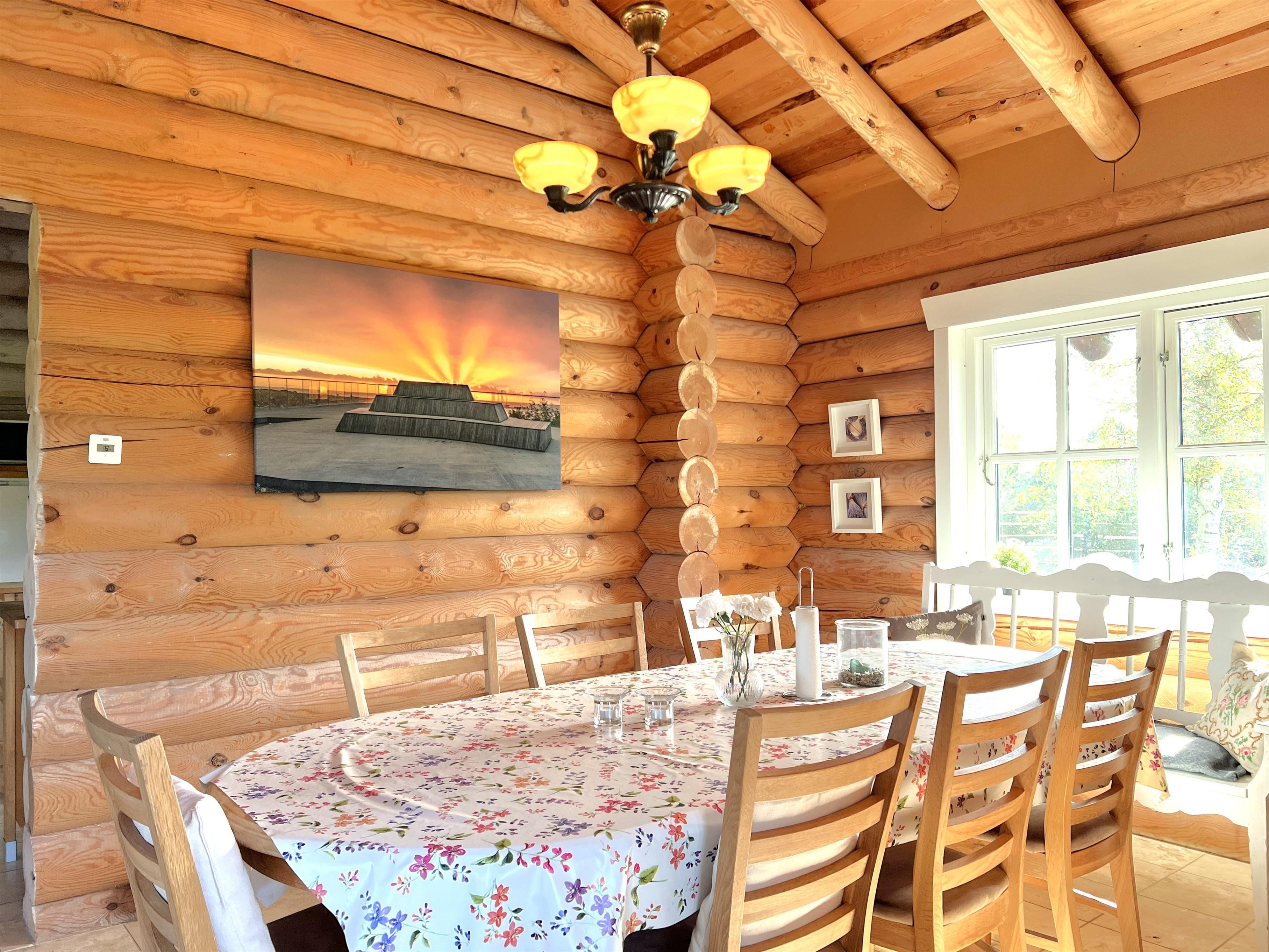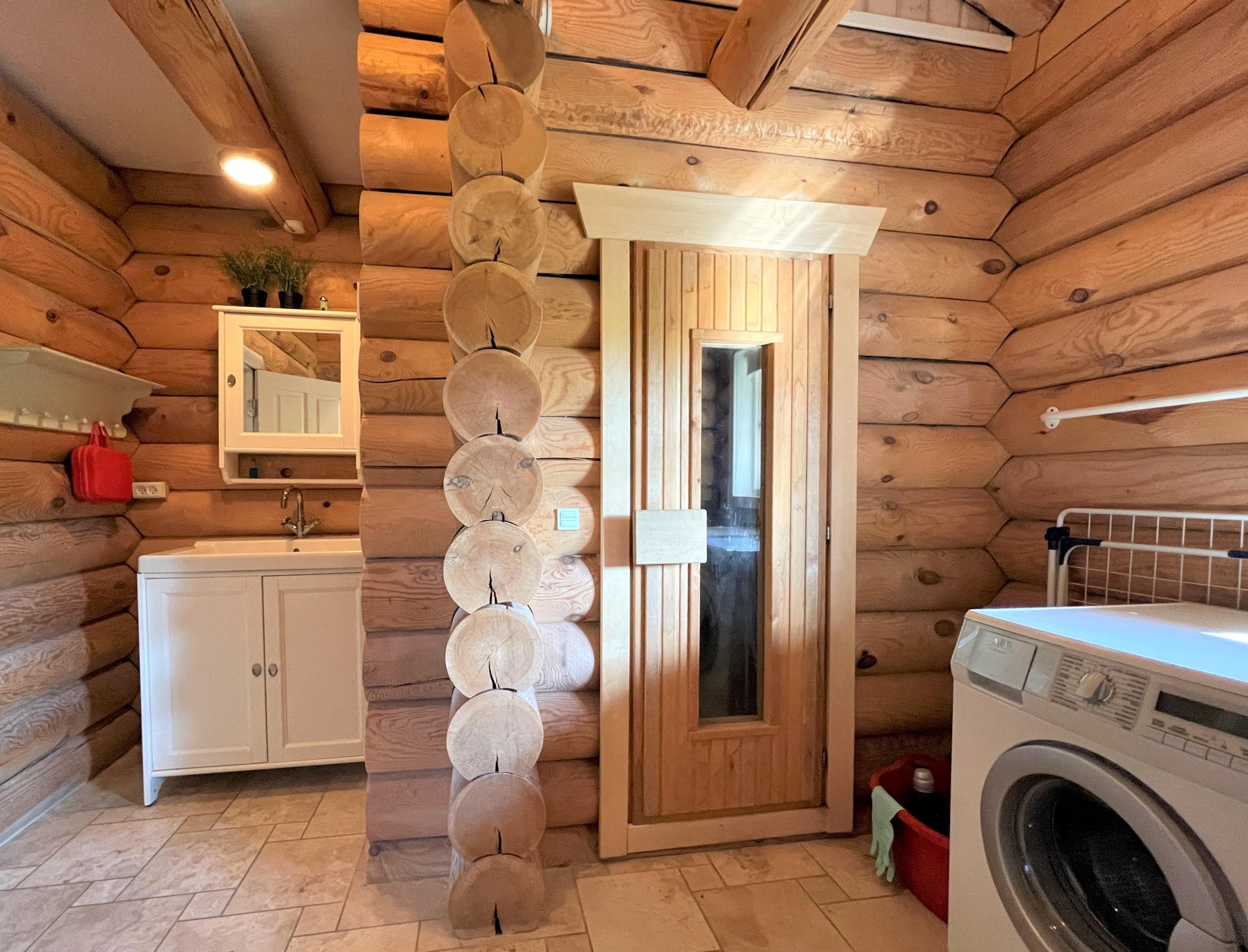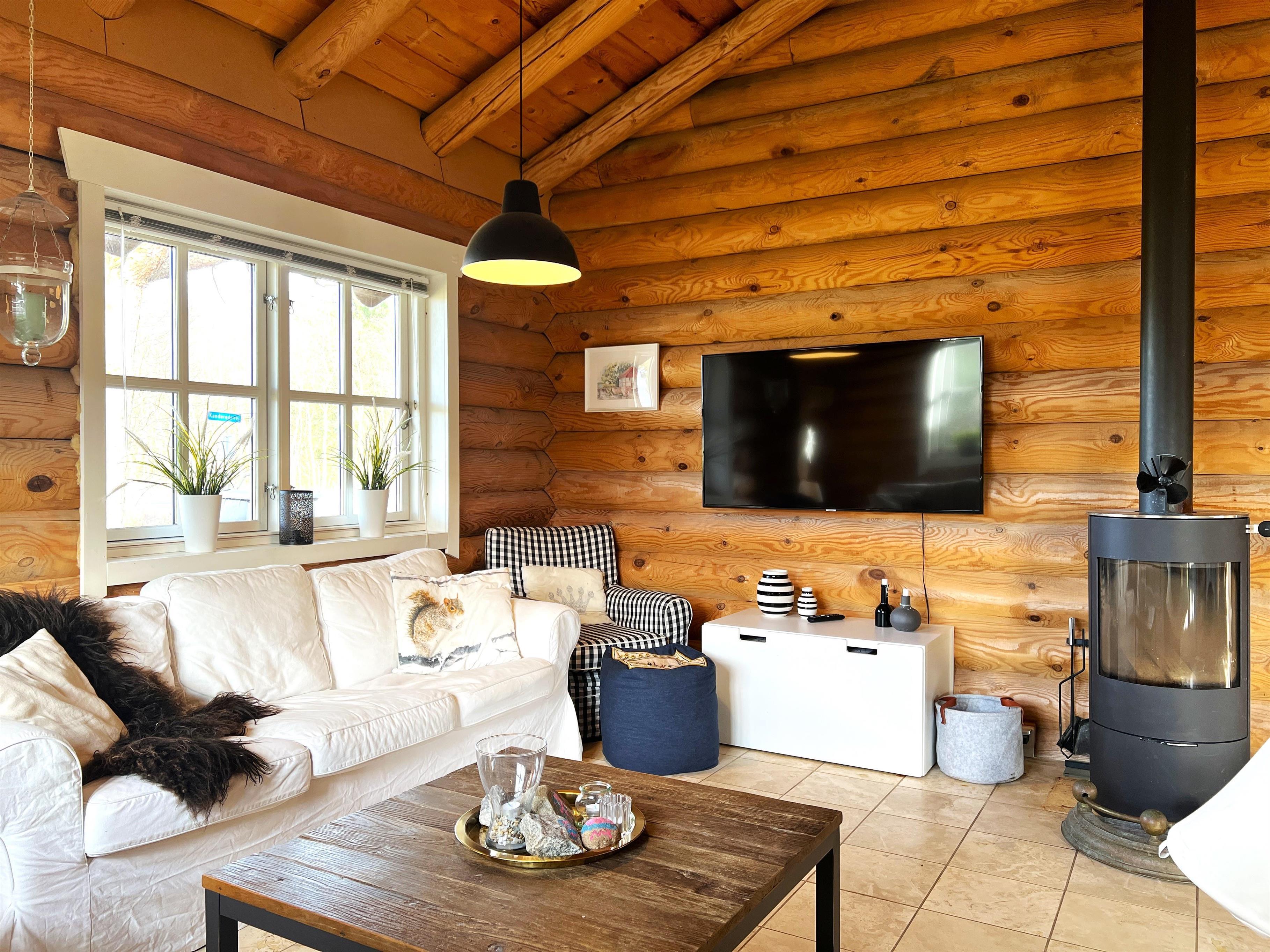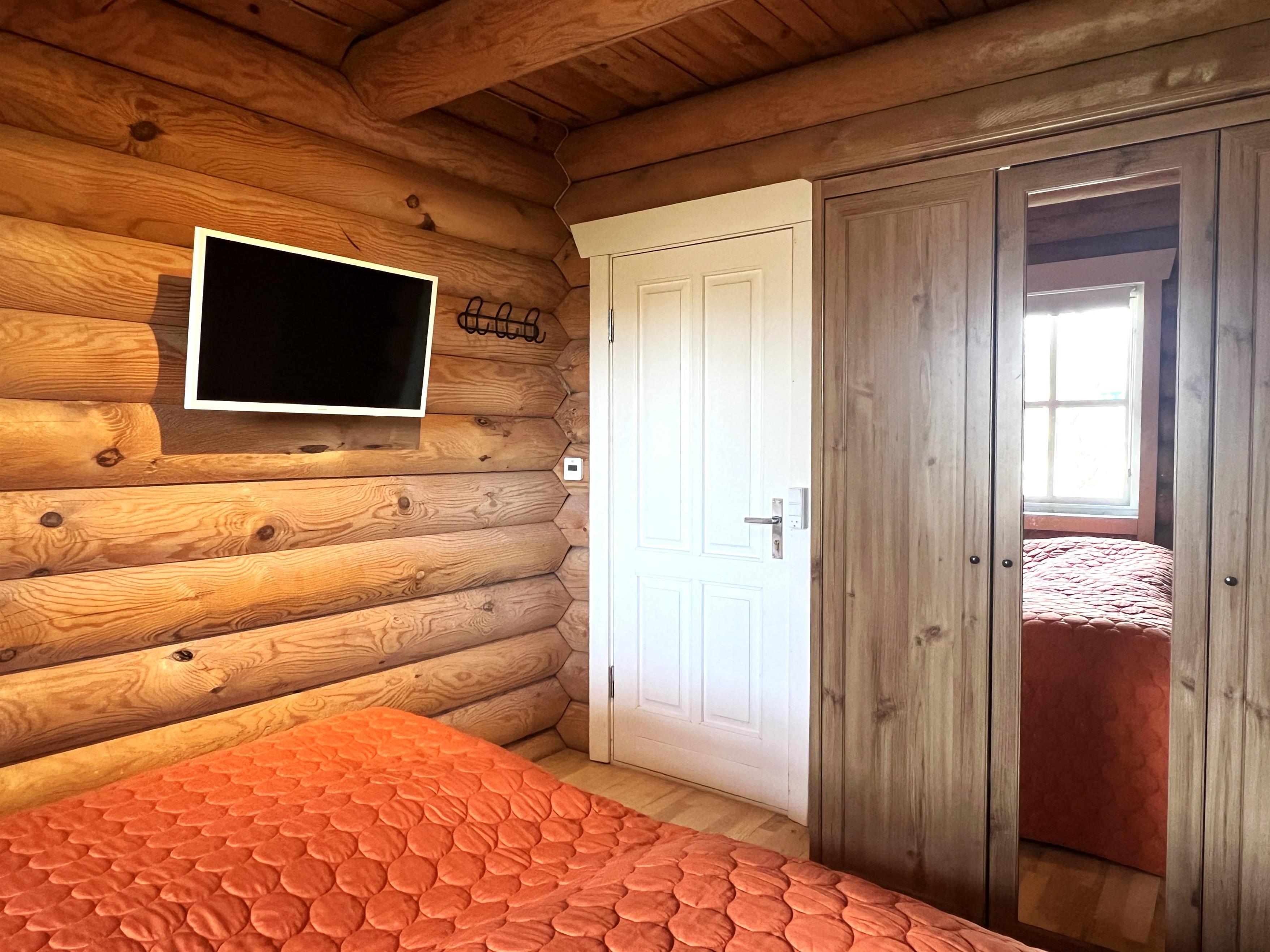 Ein wirklich schönes, geräumiges Blockhaus mit großer überdachter Terrasse und schönem umzäunten Garten.