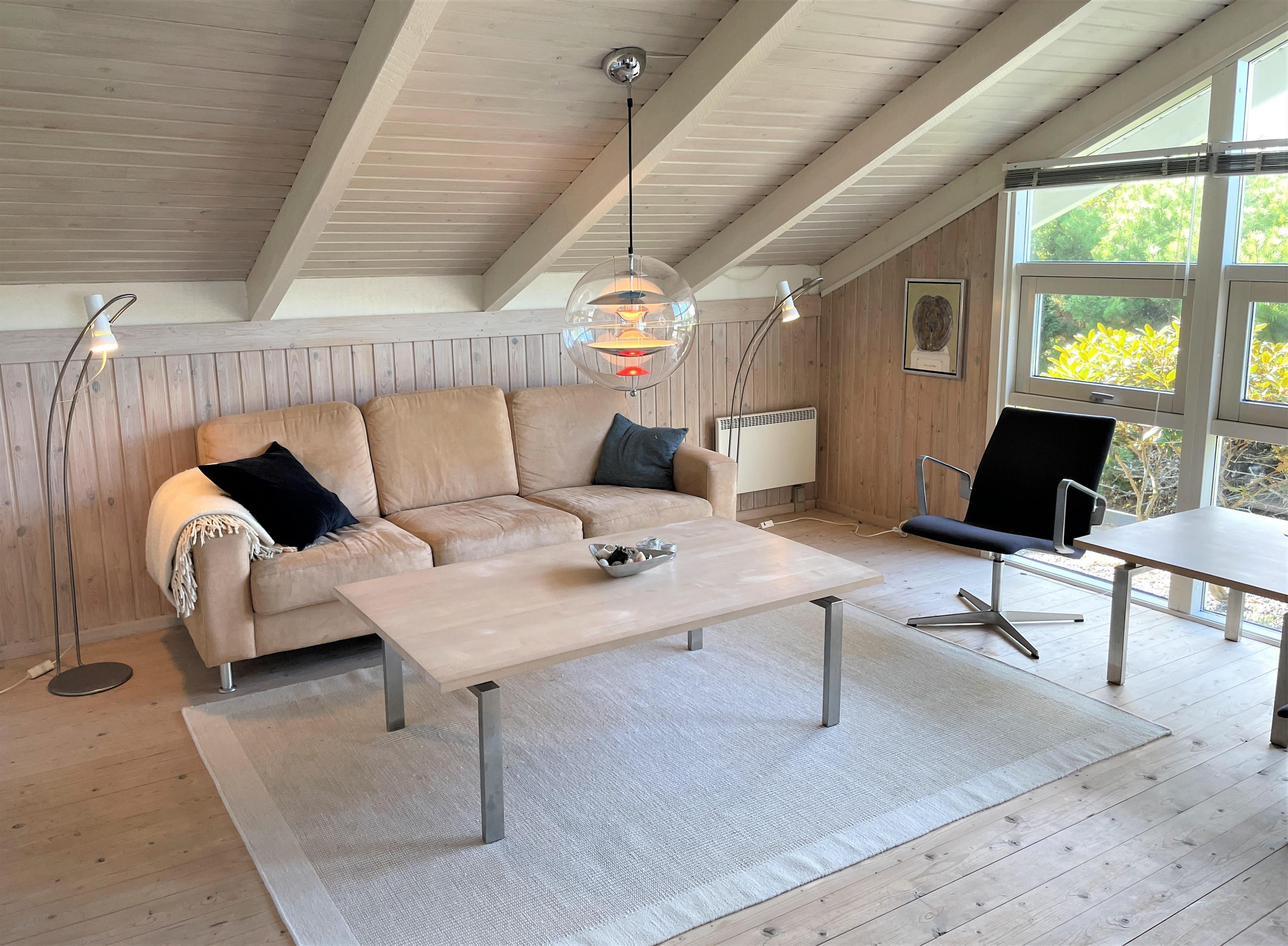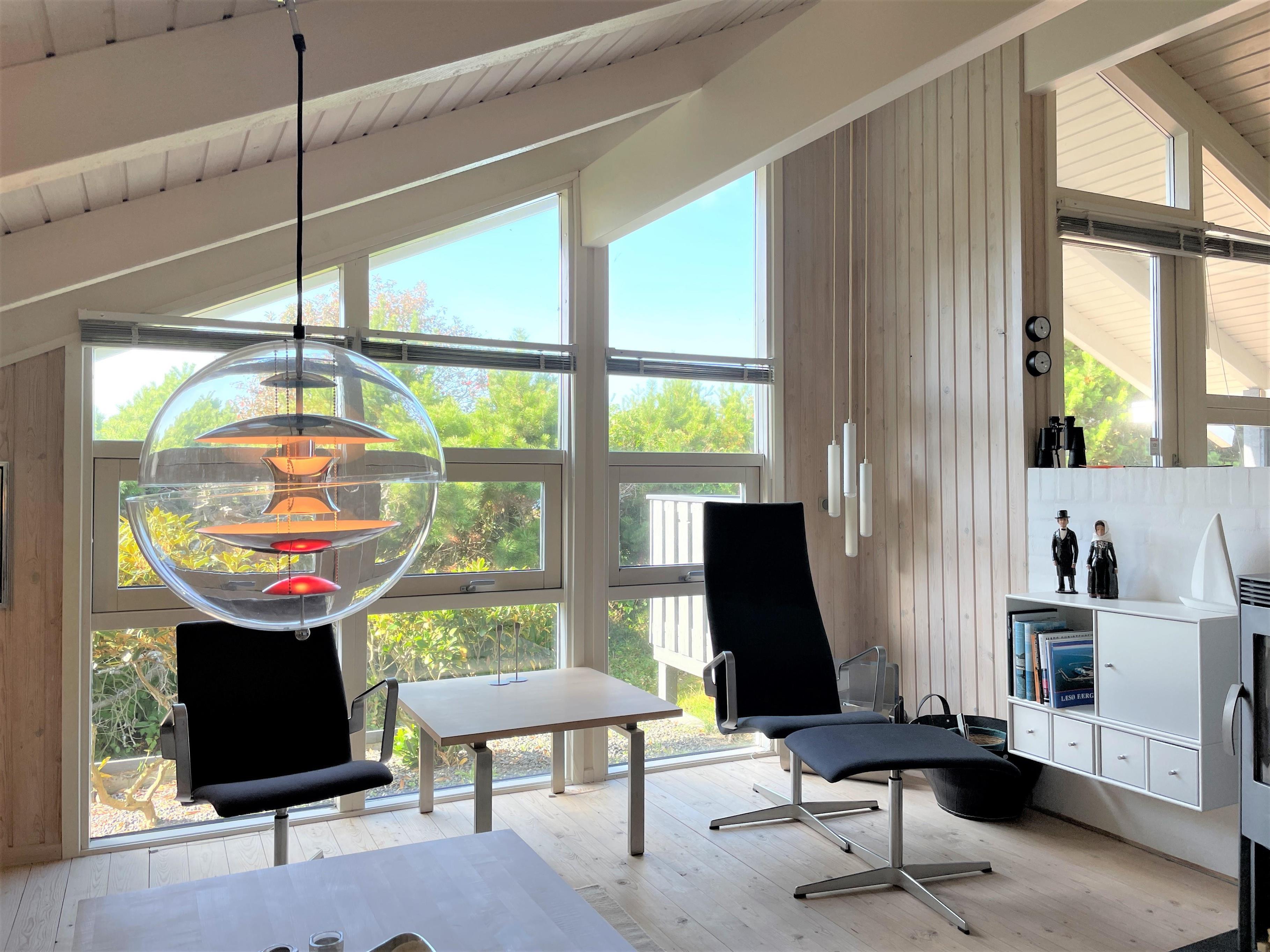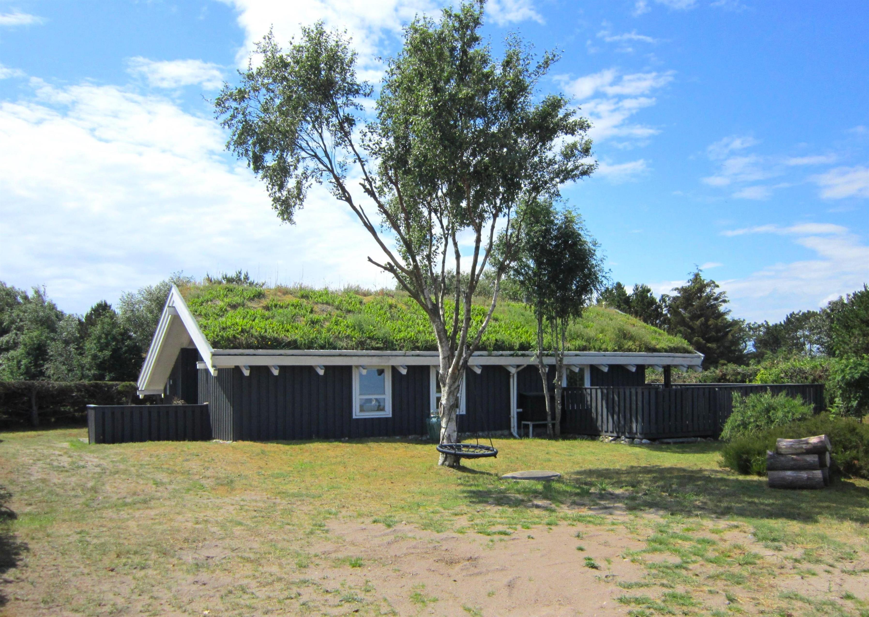 Sehr schönes Ferienhaus mit einer wunderschönen Lage mit Sicht zur Fähre und Meer. Schöner Naturgrund mit Heidekraut und Feuerplatz.