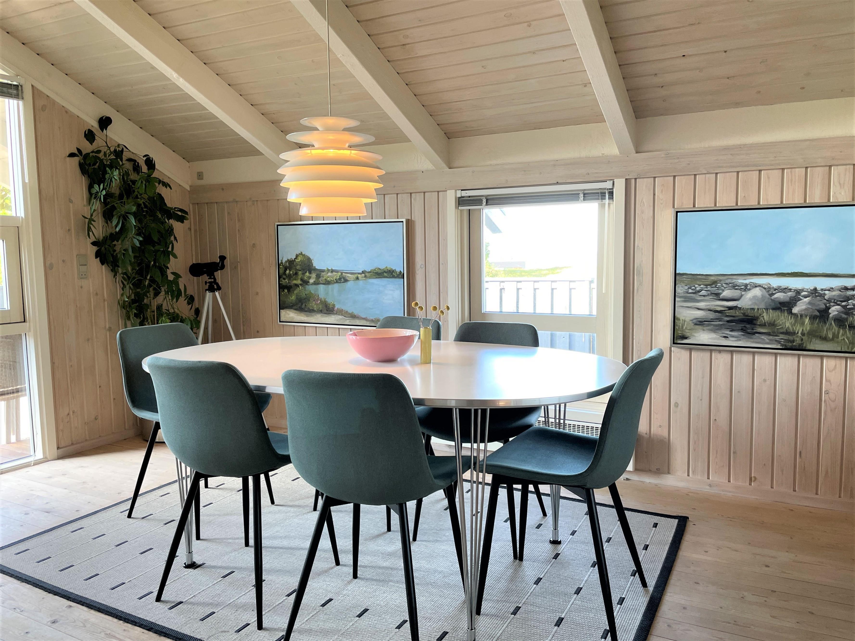 Es gibt eine schöne, helle Küche, Speiseplatz für 6 Personen, gemütliches Wohnzimmer mit Brennofen und modernen, hellen Möbeln.