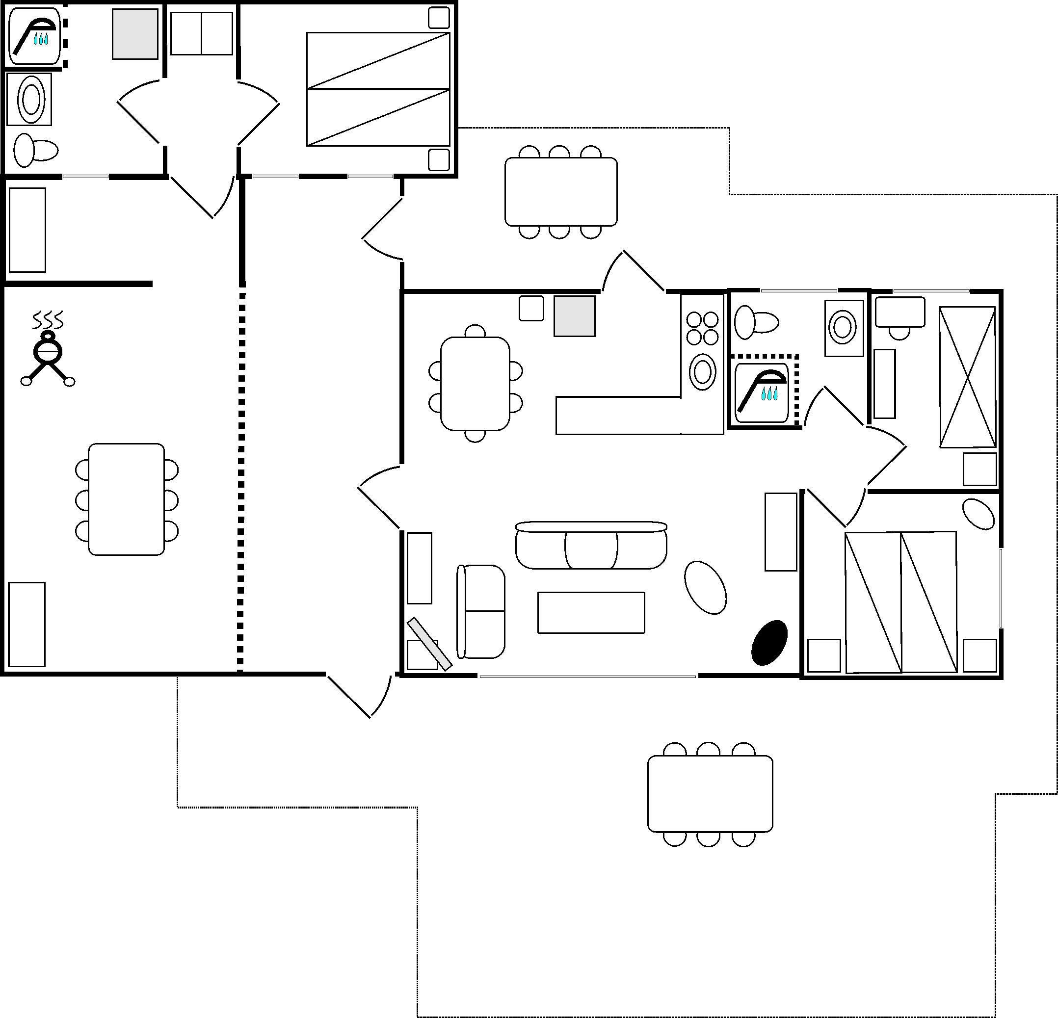 Offene Küche mit Speiseecke. Schönes, helles Wohnzimmer mit Brennofen. Schlafzimmer mit Doppelbett, Badezimmer mit Dusch. Auserdem gemütlicher Anbau mit Doppelbett und Badezimmer. Schöne Terrasse.