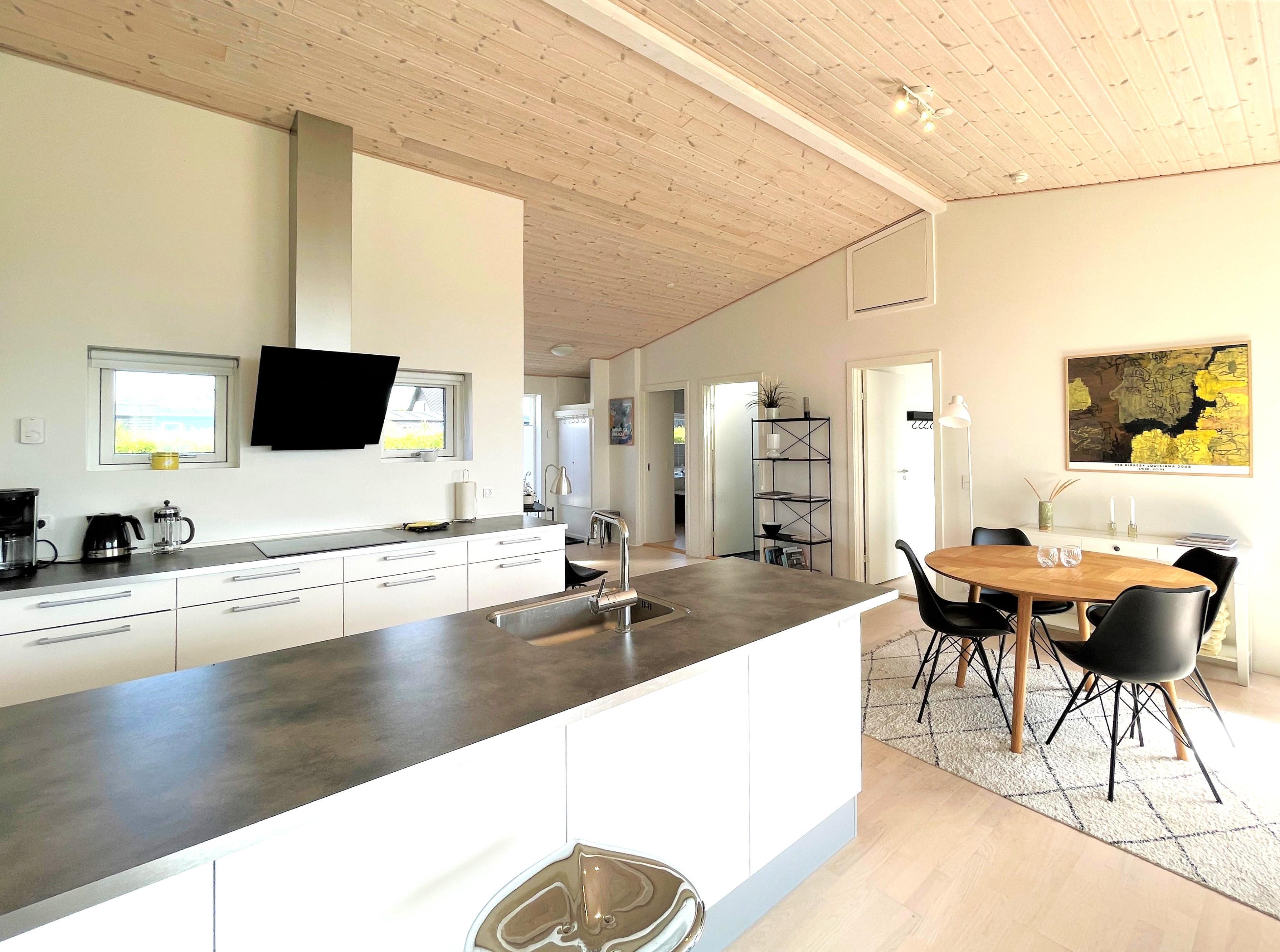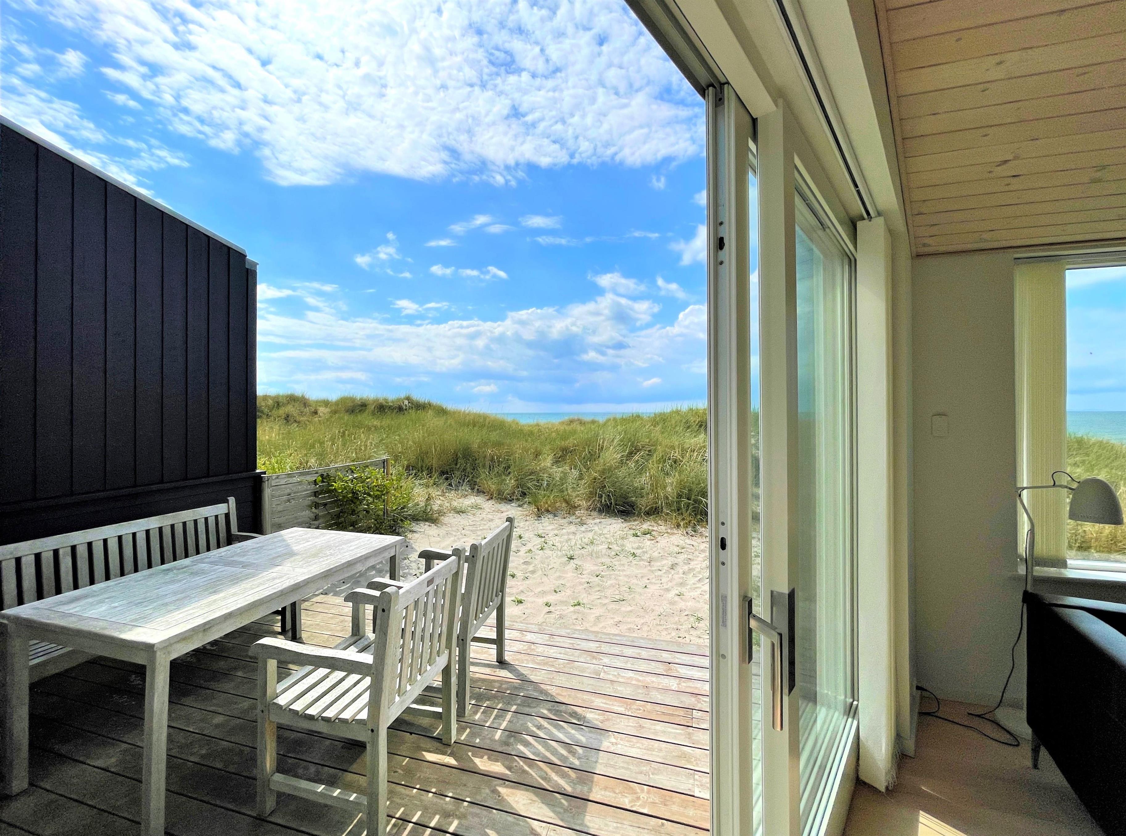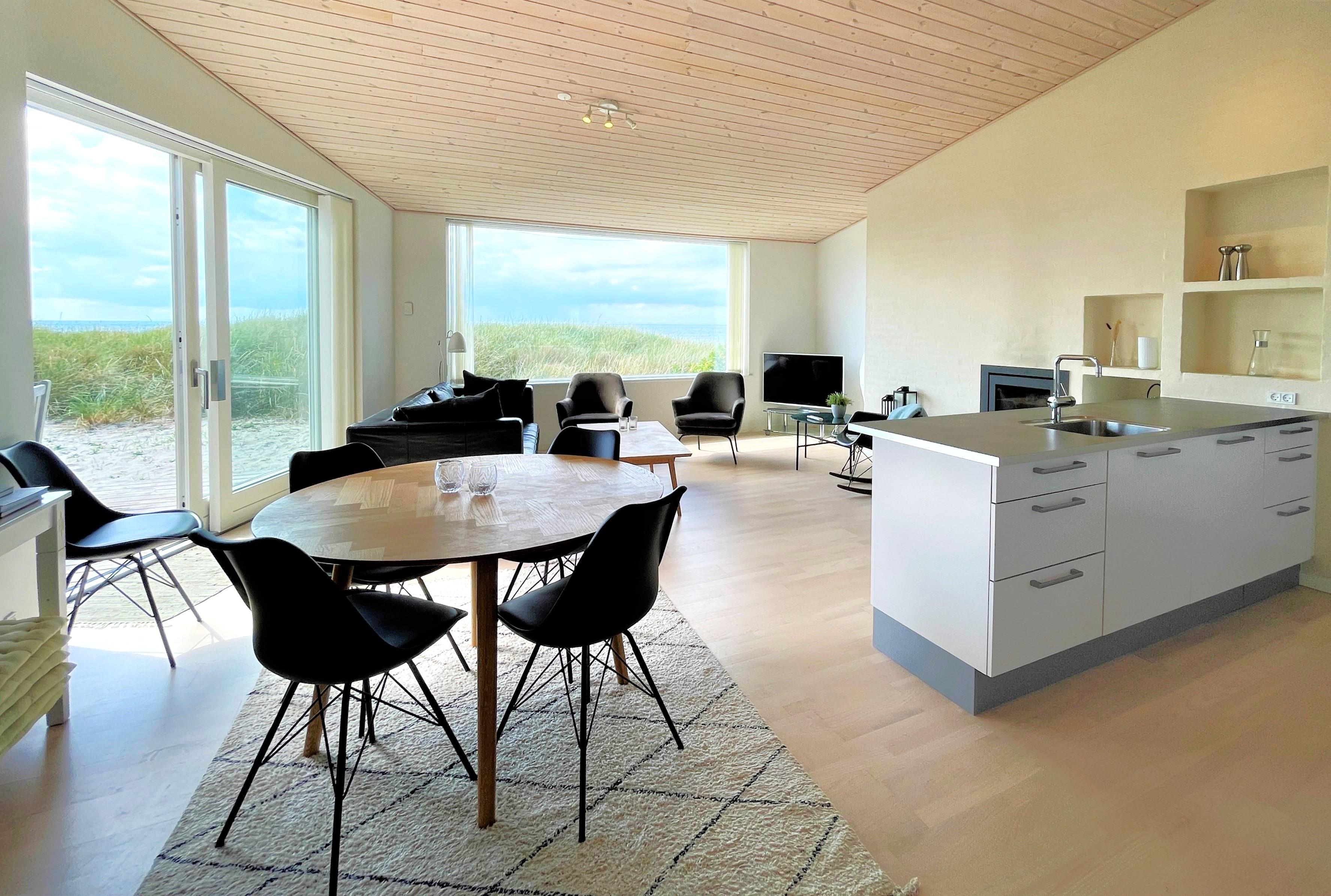 Neu bei Team Læsø. Inmitten der Dünen mit voller Meersicht, liegt dieses fantastische Strandhaus. Dies ist eines der besten Lage auf Læsø, zudem an einem der besten Sandstränden auf Læsø. Wo man wirklich den Strand und die Natur geniessen kann, und gleichzeitig nahe beim gemütlichem Hafenviertel ist. Selbst das Strandhaus beinhaltet einen schönen Eingang, grosse helle und Moderne Küche/Waschküche mit Barstuhl und Essplatz