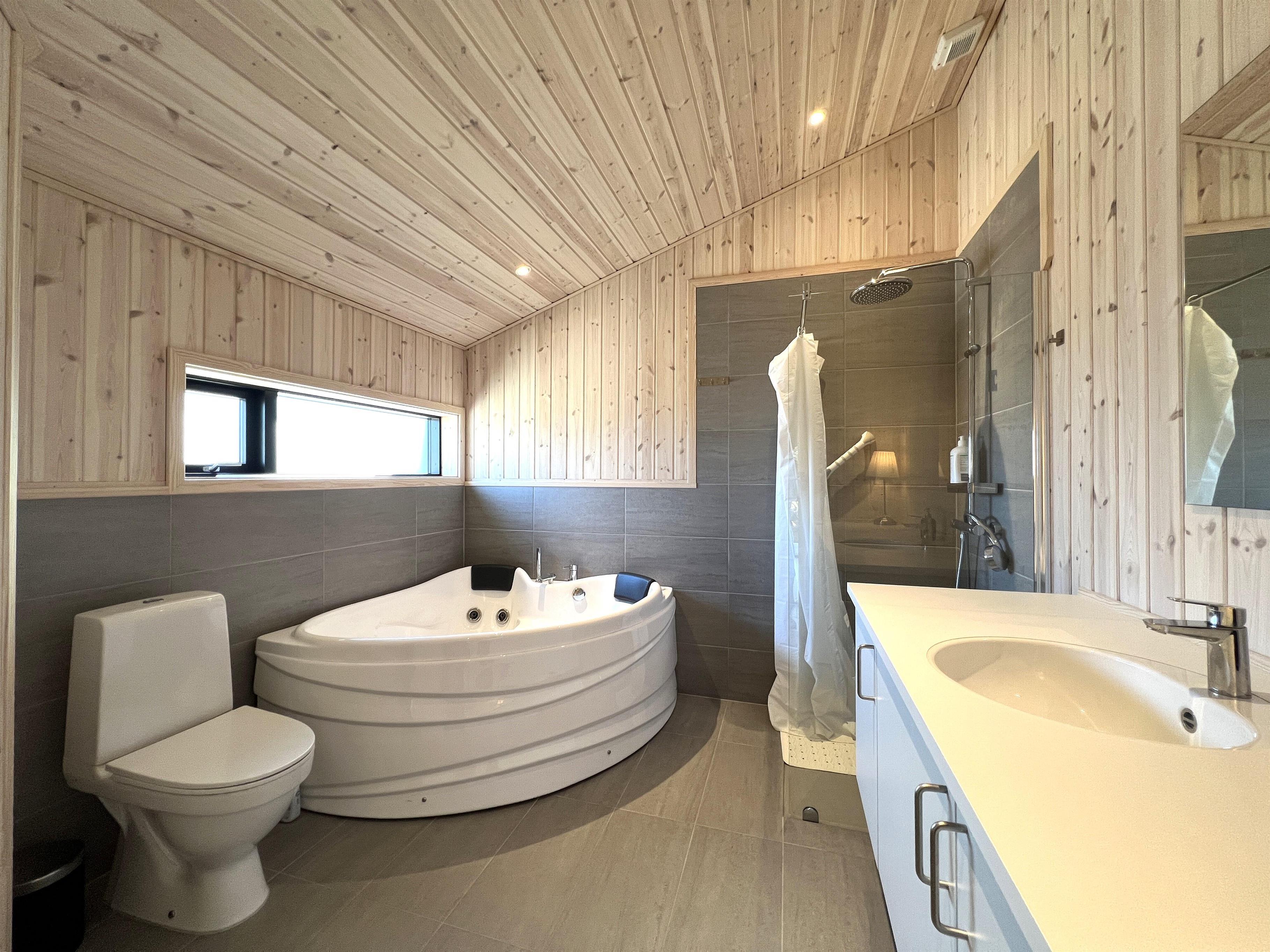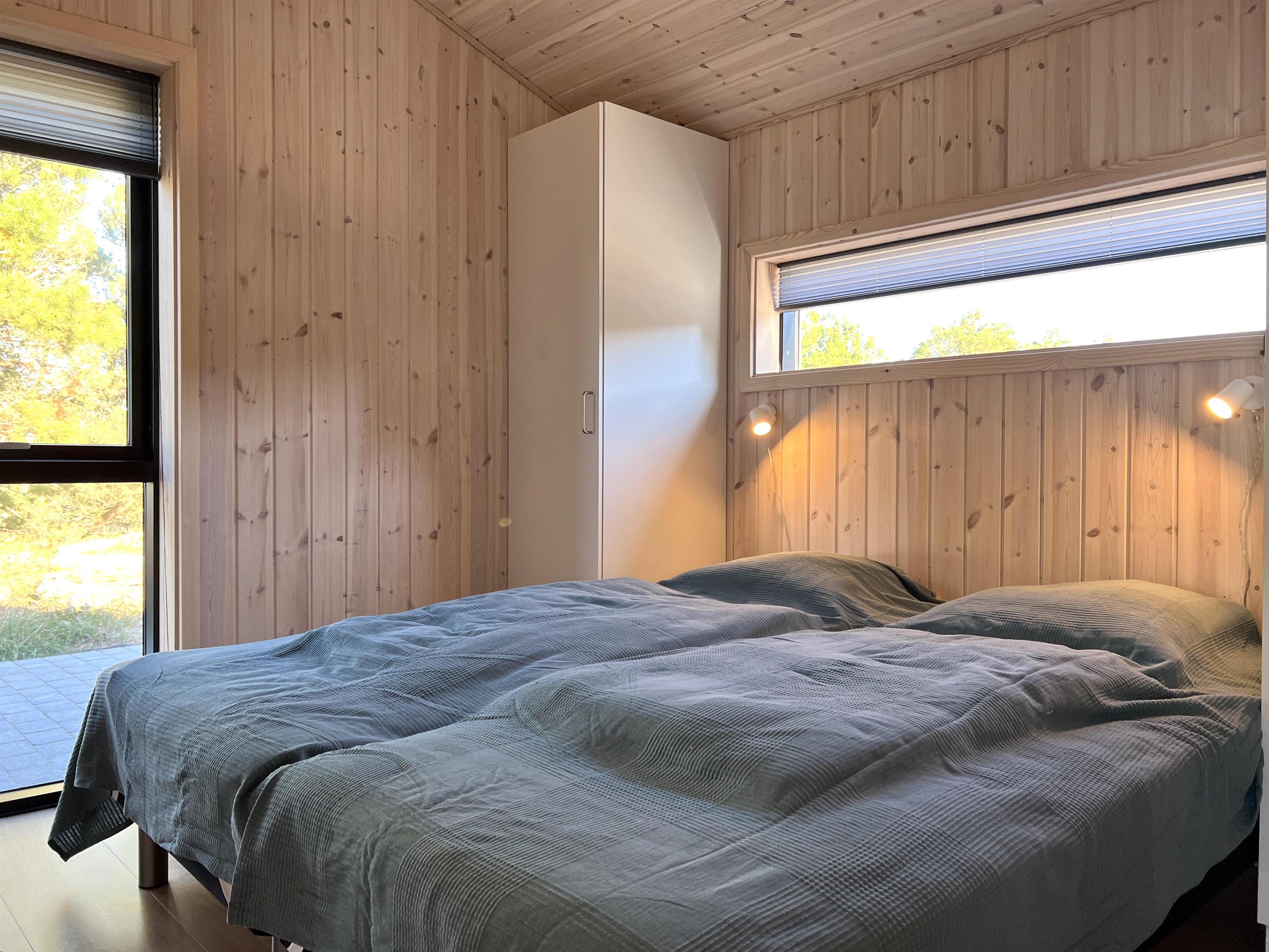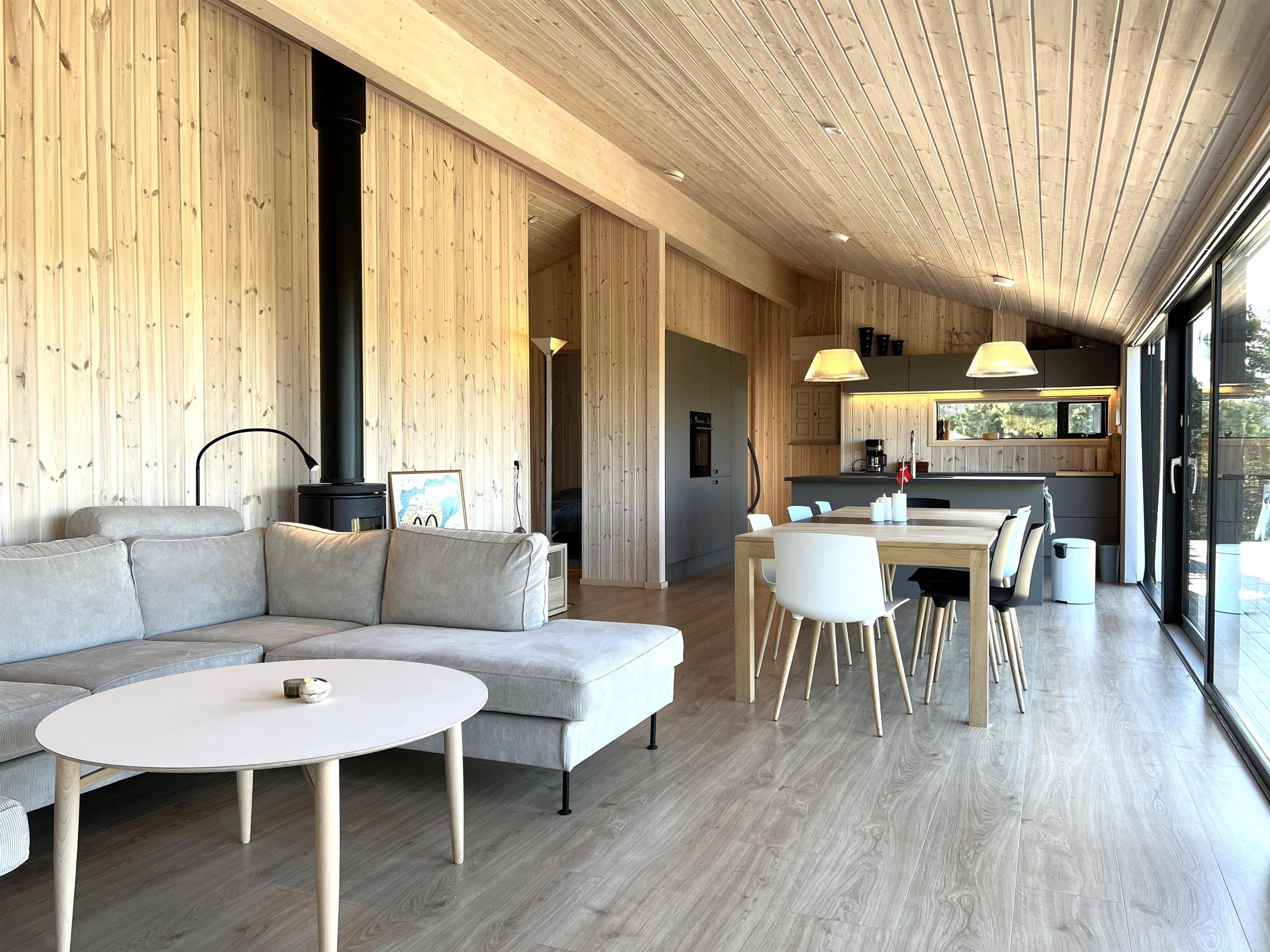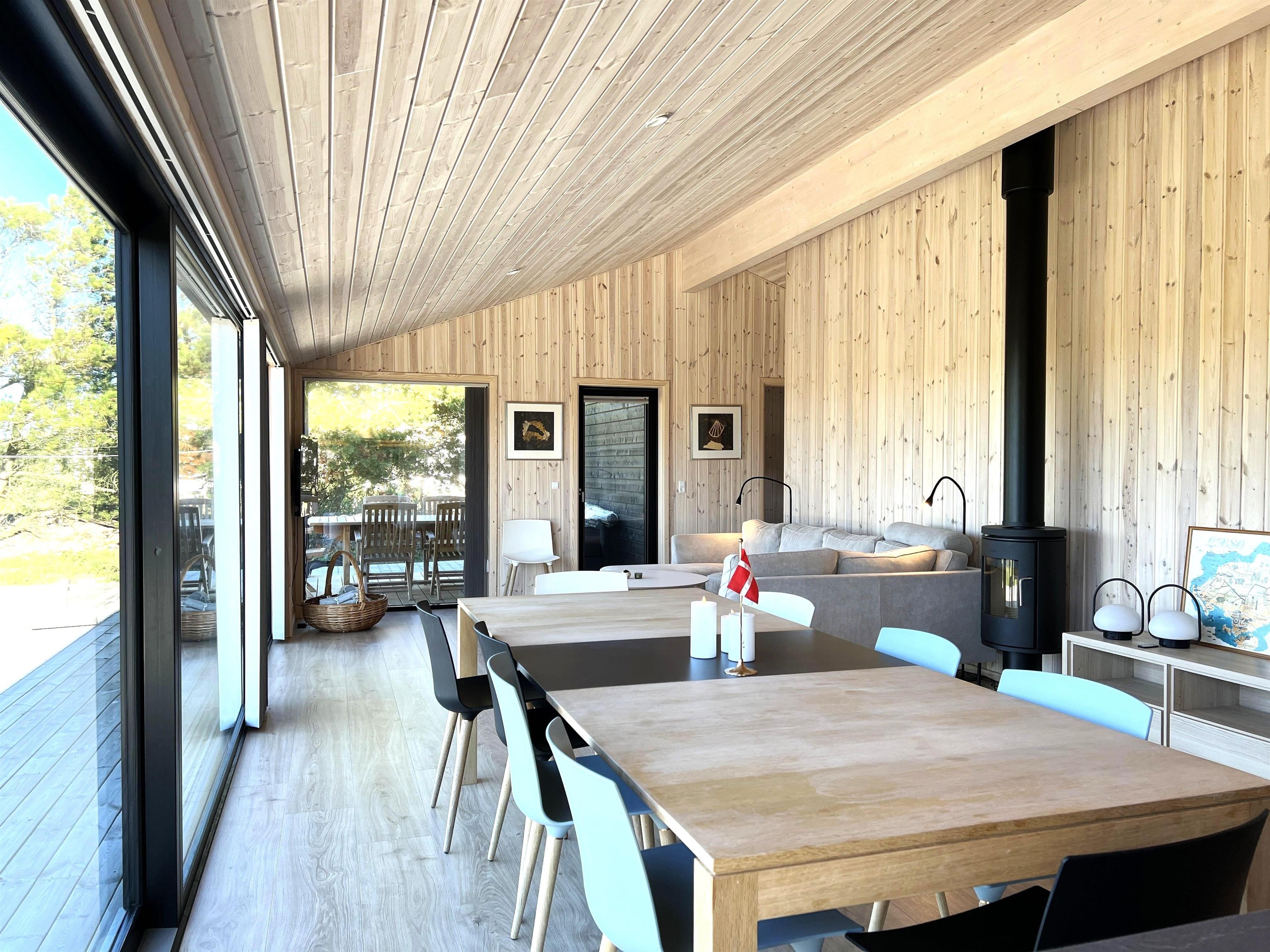 MEERBLICK: Im Schutz der äußeren Dünen mit Meerblick und direkt neben Læsøs bestem Strand, Kongestranden, liegt dieses fantastische, nagelneue Ferienhaus. Neben der einzigartigen Aussicht zu fast allen Tageszeiten bietet das Haus Platz für bis zu 9 Personen. Das Haus verfügt über viele schöne Einrichtungen wie eine große, schöne und helle Wohnküche mit Kücheninsel, Esstisch und Sofabereich mit Holzofen. Vom gesamten großen Familienzimmer hat man einen Blick auf die blauen Wellen des Kattegats und Zugang zur großen Holzterrasse des Hauses, die teilweise überdacht und mit Gartenmöbeln und einem Grill ausgestattet ist. Das Haus verfügt über vier Schlafzimmer, von denen drei mit Doppelbetten und eines mit einem Etagenbett ausgestattet sind, wobei das untere Bett 140 cm breit ist. Es gibt zwei moderne, schöne Badezimmer, eines davon mit Sauna und Spa. Am Haus wurde eine Ladestation für Elektroautos installiert. Das Haus ist perfekt für z.b. gemeinsam reisende Familien.