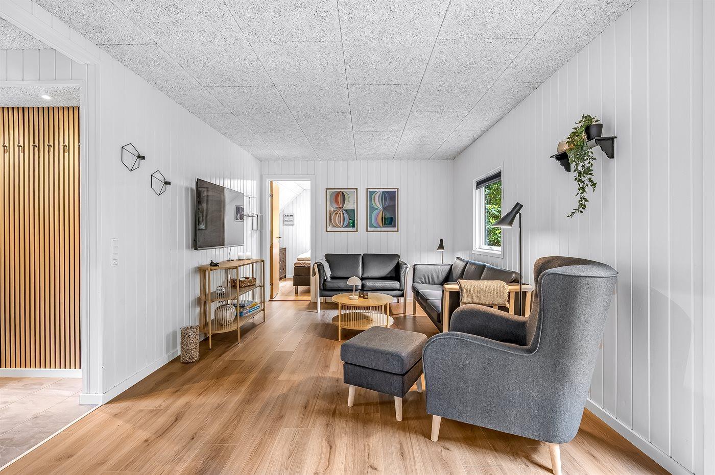 Dieses schöne und geräumige Ferienhaus wurde 2025 umfassend renoviert, sodass es nun modern, hell und einladend wirkt. Es bietet auf zwei Etagen viel Platz, ideal für eine Familie mit 2–3 Kindern, die ihren Urlaub in dieser ruhigen und naturschönen Umgebung verbringen möchte. Zudem ist es möglich, den vierbeinigen Freund der Familie mitzubringen. Das Ferienhaus liegt völlig ungestört auf dem 754 m² großen Grundstück, das zudem eingezäunt ist.
