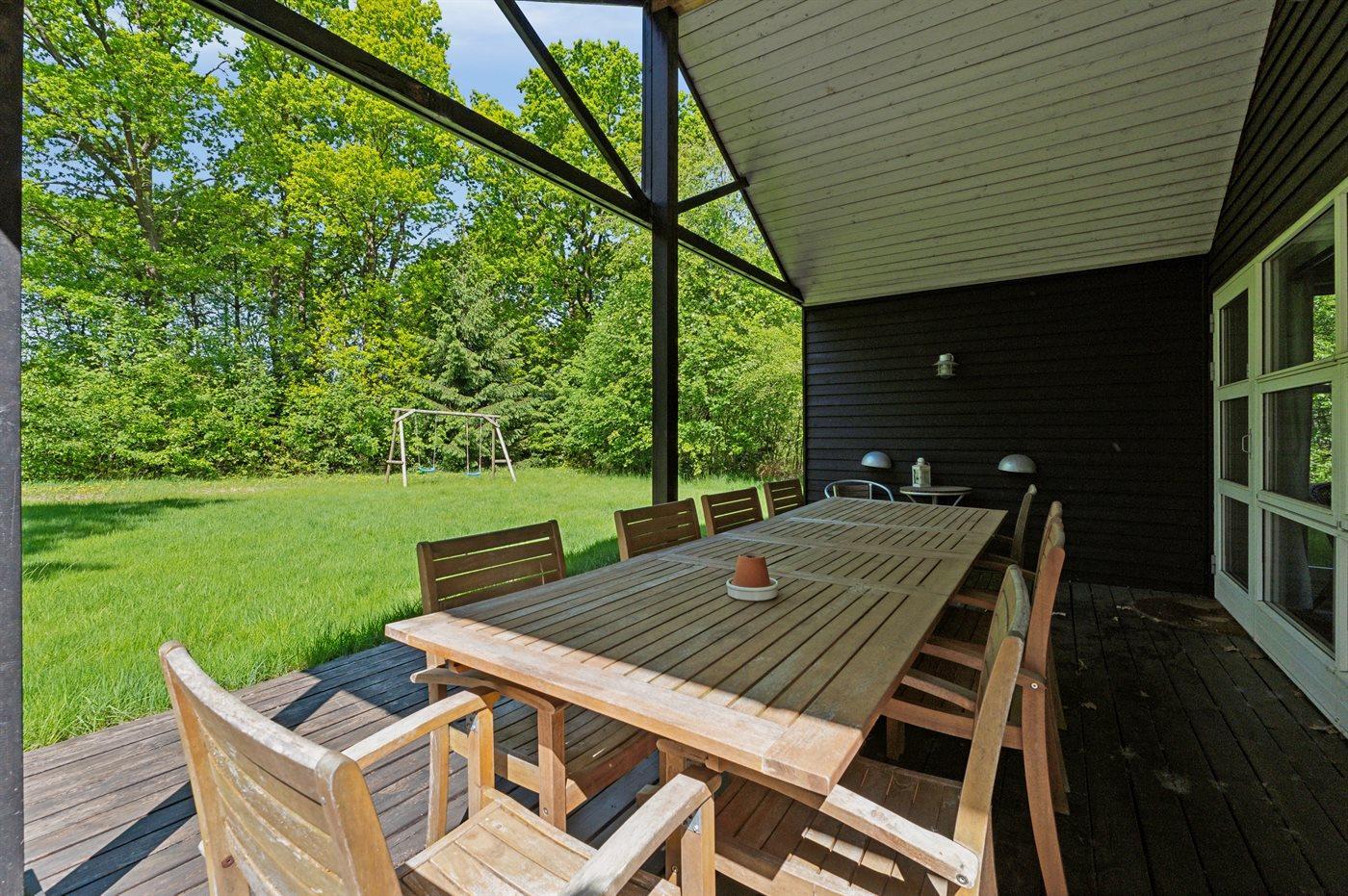 Modernes Ferienhaus in ruhiger Natur bei Give mit Terrasse, Kamin und guter Ausstattung für erholsame Tage.