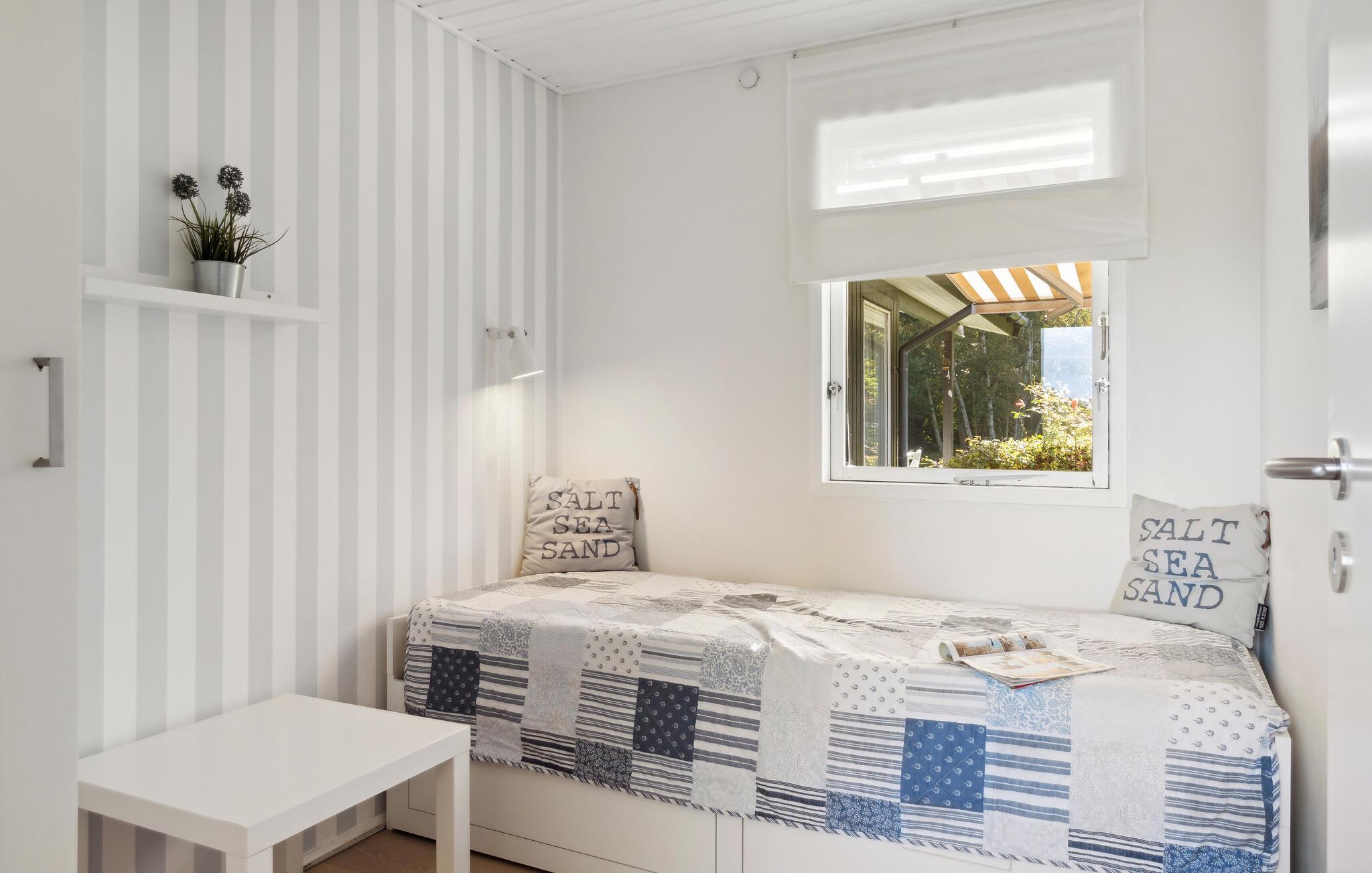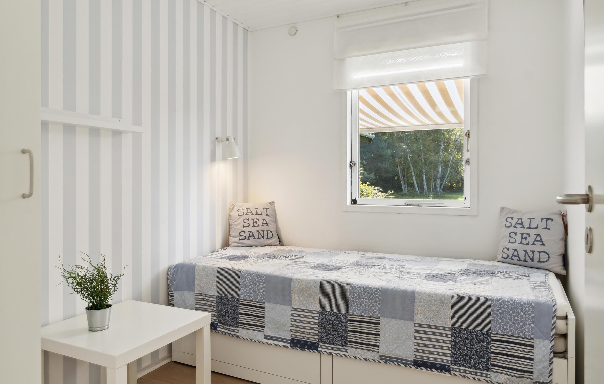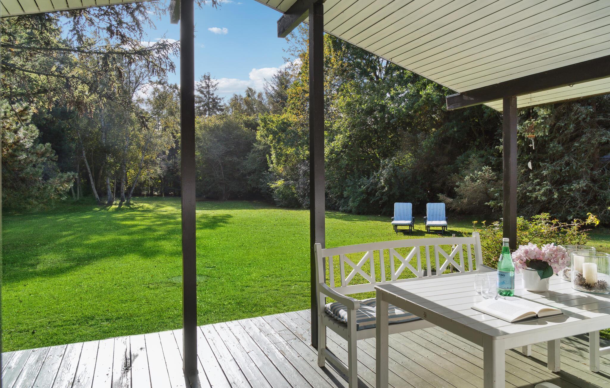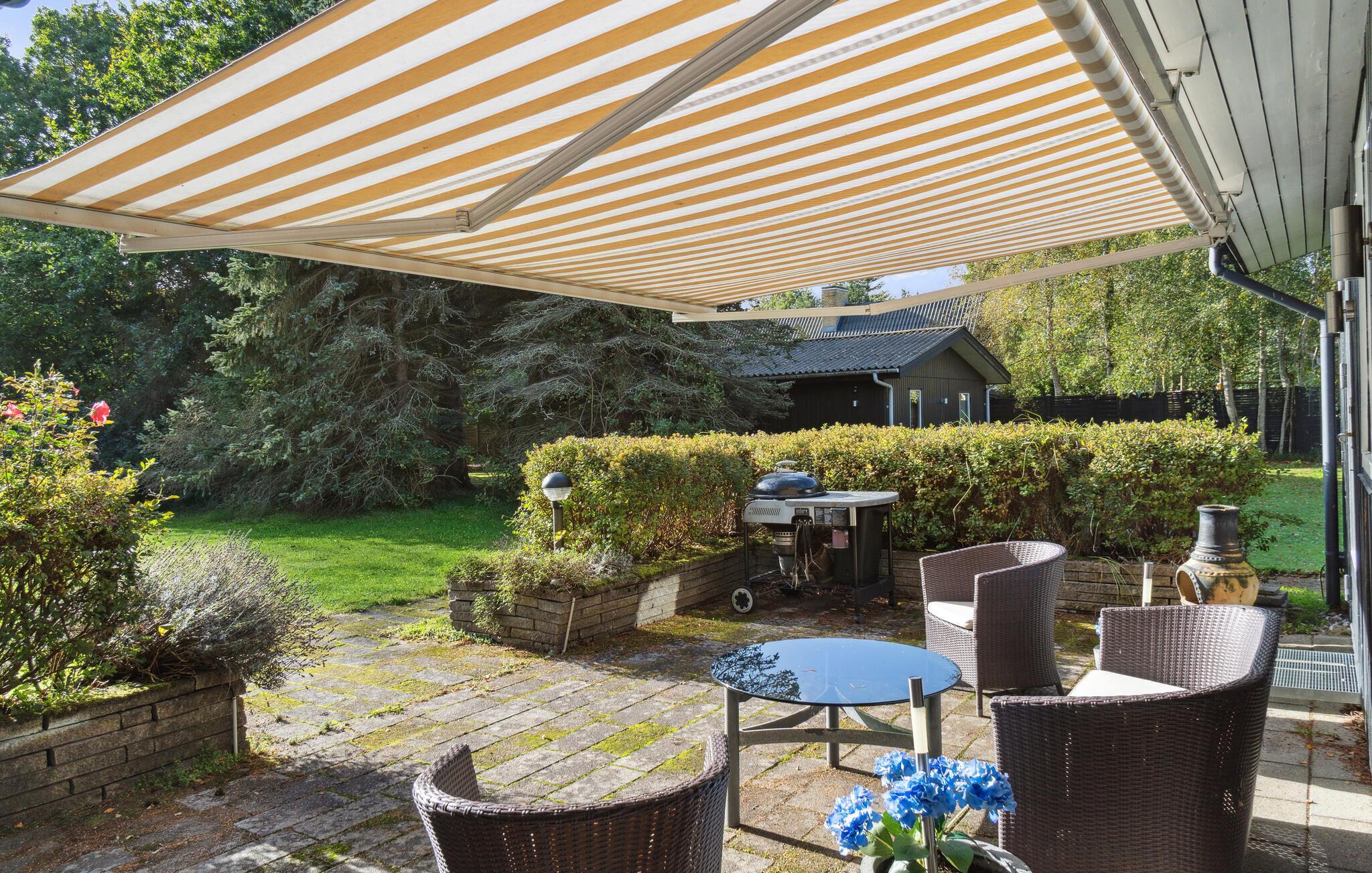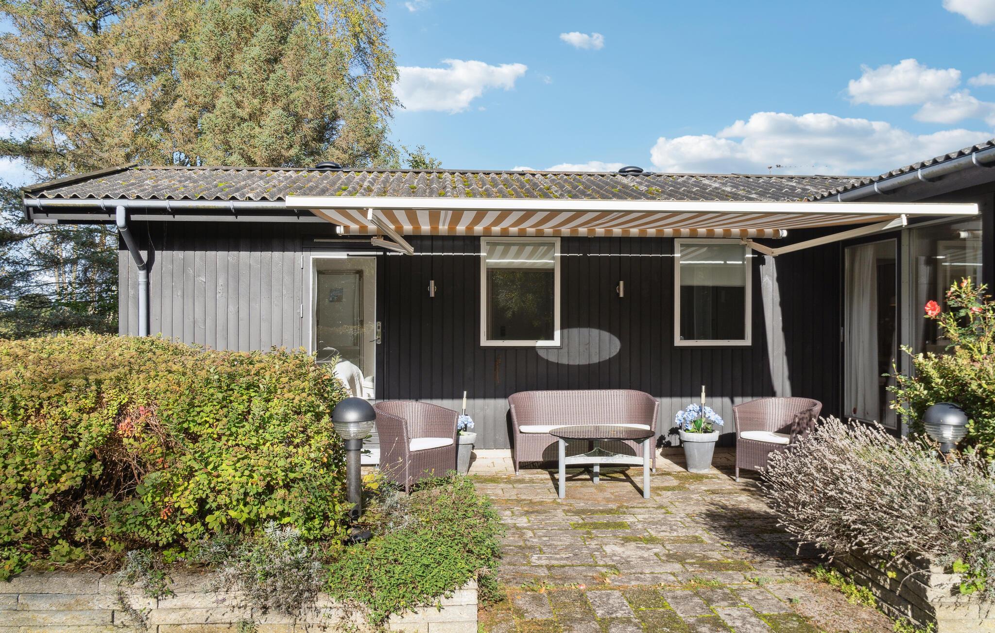 Gemütliches Holzferienhaus nahe Vester Lyng Strand mit Garten, Kamin und moderner Ausstattung für erholsame Familienzeit.