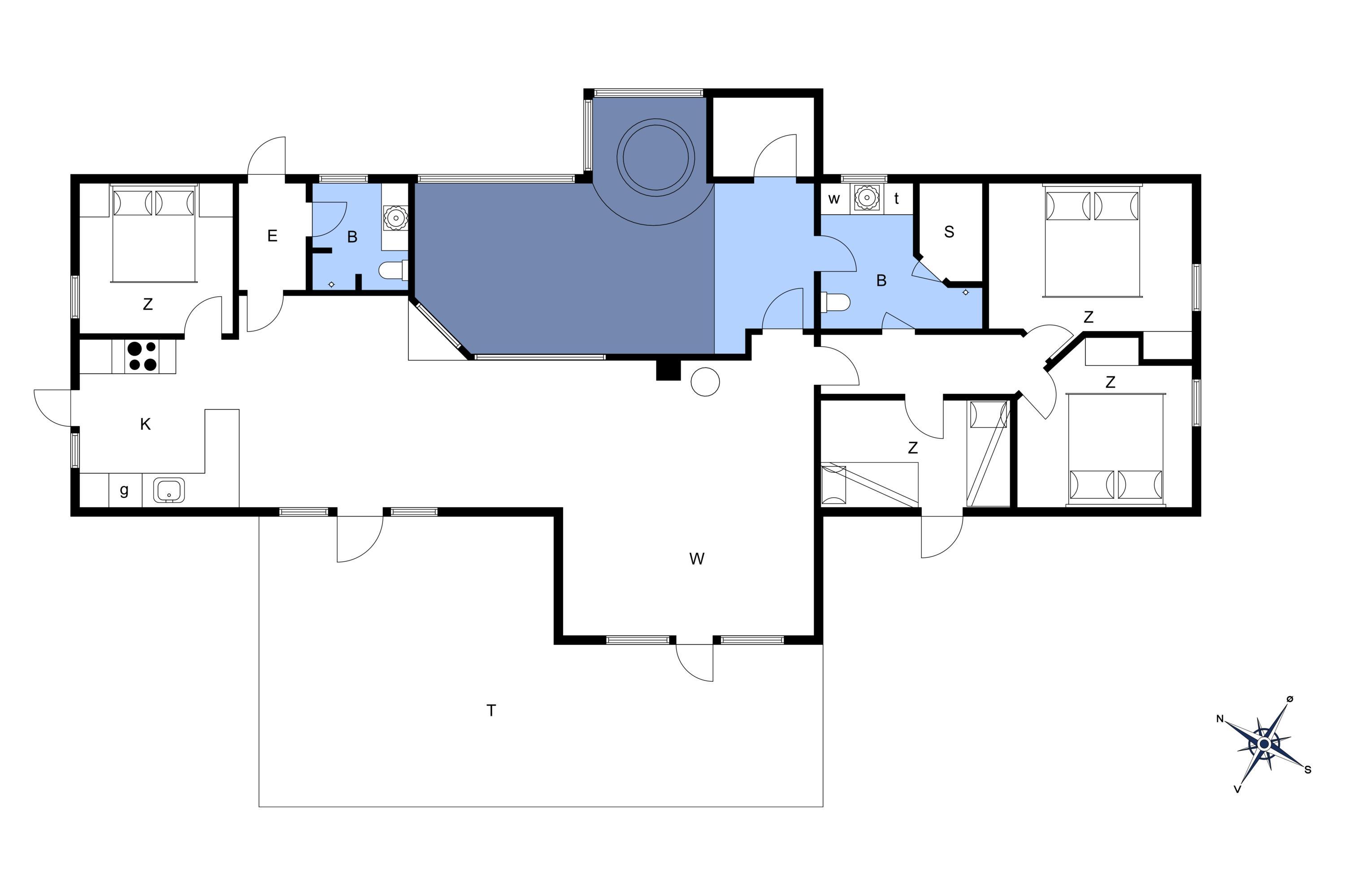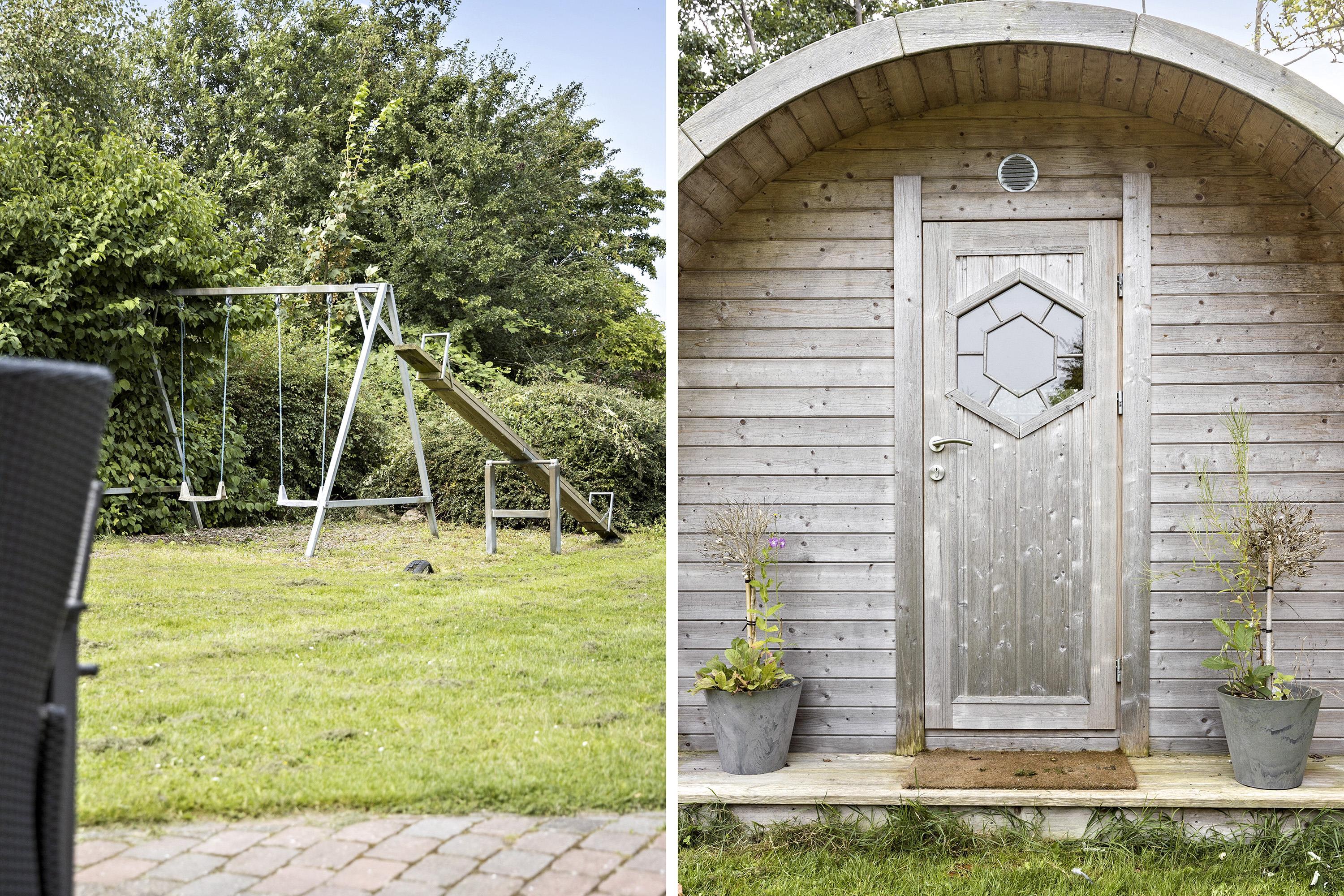 Das Urlaubsdomizil befindet sich im beliebten Ferienhausgebiet von Skåstrup Strand, nur 200 Meter abseits des kinderfreundlichen Badestrandes, der Ihnen auch gute Angelbedingungen bietet. Das Haus empfängt Sie mit einer hellen und gut ausgestatteten Küche, die sich in offener Verbindung zum kombinierten Wohn- und Essbereich befindet. Der moderne und ansprechende Wohnbereich verwöhnt Sie mit einem romantisch knisternden Kaminofen und einem direkten Zugang zum großen Terrassenareal. Vom Wohnraum aus gelangen Sie darüber hinaus auch in den schönen Poolraum, der neben dem Swimmingpool auch mit einem attraktiven Whirlpool besticht. Die Schlafplätze verteilen sich auf insgesamt vier gute Schlafräume mit drei Doppelbetten und vier Etagenbetten. Hinzu gesellen sich zwei gute Badezimmer mit je einer Dusche. Im gemütlichen Nebengebäude mit El-Heizung sind drei weitere Schlafgelegenheiten in Form von Matratzen untergebracht – das Nebengebäude kann bis zu 3 Wochen vor Anreise erworben werden – fragen Sie bitte Slotsferie Danmark nach dem Preis. BITTE BEACHTEN, dass das Nebengebäude nur von April bis September vermietet wird, da es über einen Elektroradiator beheizt wird. Der große Garten lädt Sie und Ihre Lieben zu gemeinsamen Ballspielen und zu zahllosen entspannten Stunden unter freiem Himmel ein. Auf dem Grundstück steht zudem eine tolle Saunatonne für Sie bereit. Dieses wunderbare Urlaubsdomizil, das sich sehr schön für den Urlaub befreundeter Familien eignet, bildet einen hervorragenden Ausgangspunkt für zahlreiche Aktivitäten und Ausflüge auf der Insel Fünen. Auch das in Mitteljütland gelegene, legendäre Legoland könnte ein sehr schönes Ziel für einen Tagesauflug darstellen.