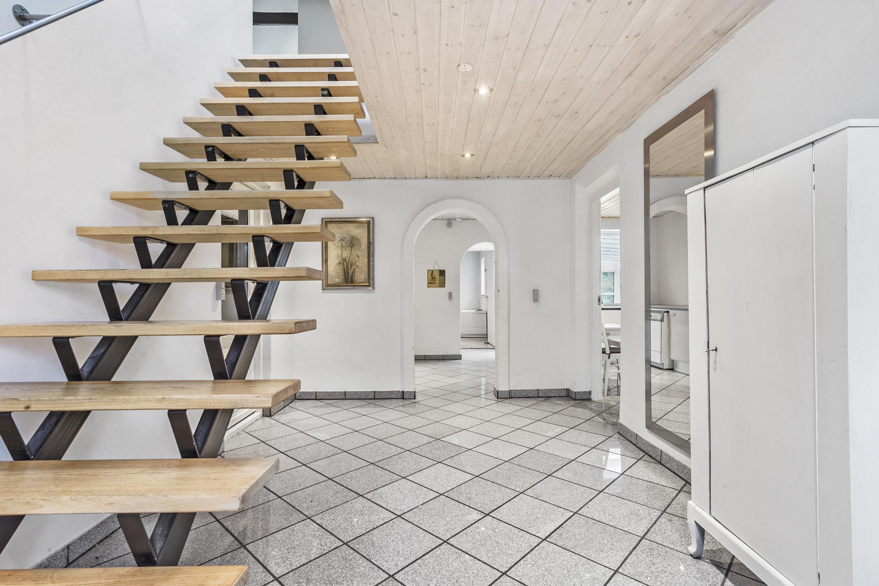 Ein schönes, im Jahr 2013 renoviertes zweistöckiges Ferienhaus von Feldern und der wenig befahrenen Straße umgeben, die die Ferienhausgebiete Vejlby Fed und Båring Vig miteinander verbindet. Das Haus verfügt im Erdgeschoss über ein geräumiges Wohnzimmer, ein Esszimmer mit Kaminofen und einer offenen, modernen Küche, ein Wintergarten mit zusätzlichem Essplatz und Fensterfront zum gepflasterten Hof hinaus, und ein großes Badezimmer mit Dusche. Im 1. Stock befinden sich die 5 Schlafräume sowie ein weiteres Badezimmer. Das Haus hat in 2024 eine Luft zu Wasser Wärmepumpe bekommen.