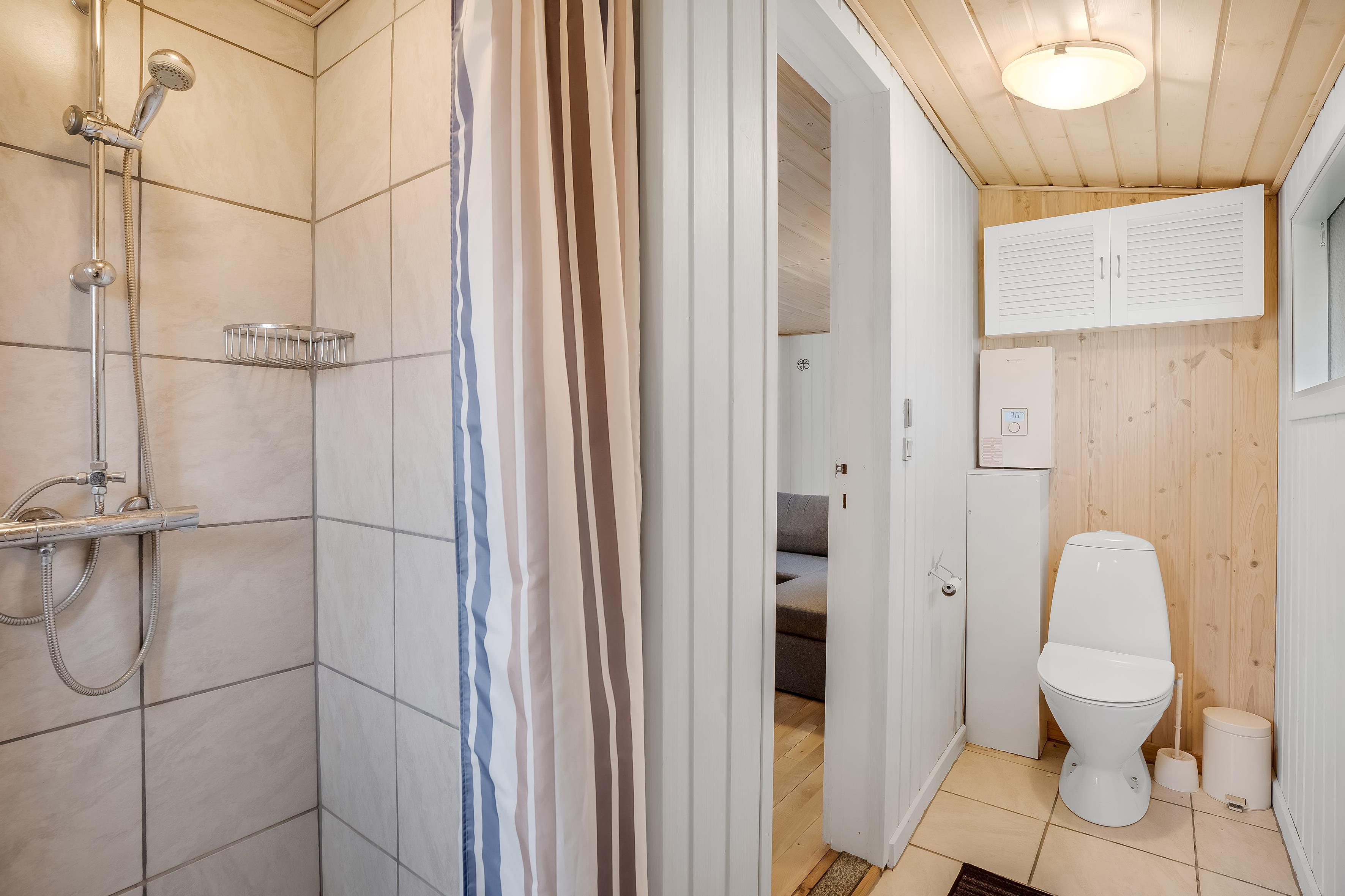 Das Badezimmer ist modern ausgestattet und verfügt über eine Dusche, ein WC und Fußbodenheizung, die für ein rundum angenehmes Wohngefühl sorgen. Das Haus verfügt außerdem über eine praktische Spülmaschine, die das Aufräumen nach dem Essen zum Kinderspiel macht. Die Küche ist mit Cerankochfeld, Backofen, Kühlschrank, Gefrierschrank (15 Liter), Mikrowelle und Kaffeemaschine bestens ausgestattet. So können Sie in aller Ruhe köstliche Mahlzeiten zubereiten und Ihren Morgenkaffee genießen.