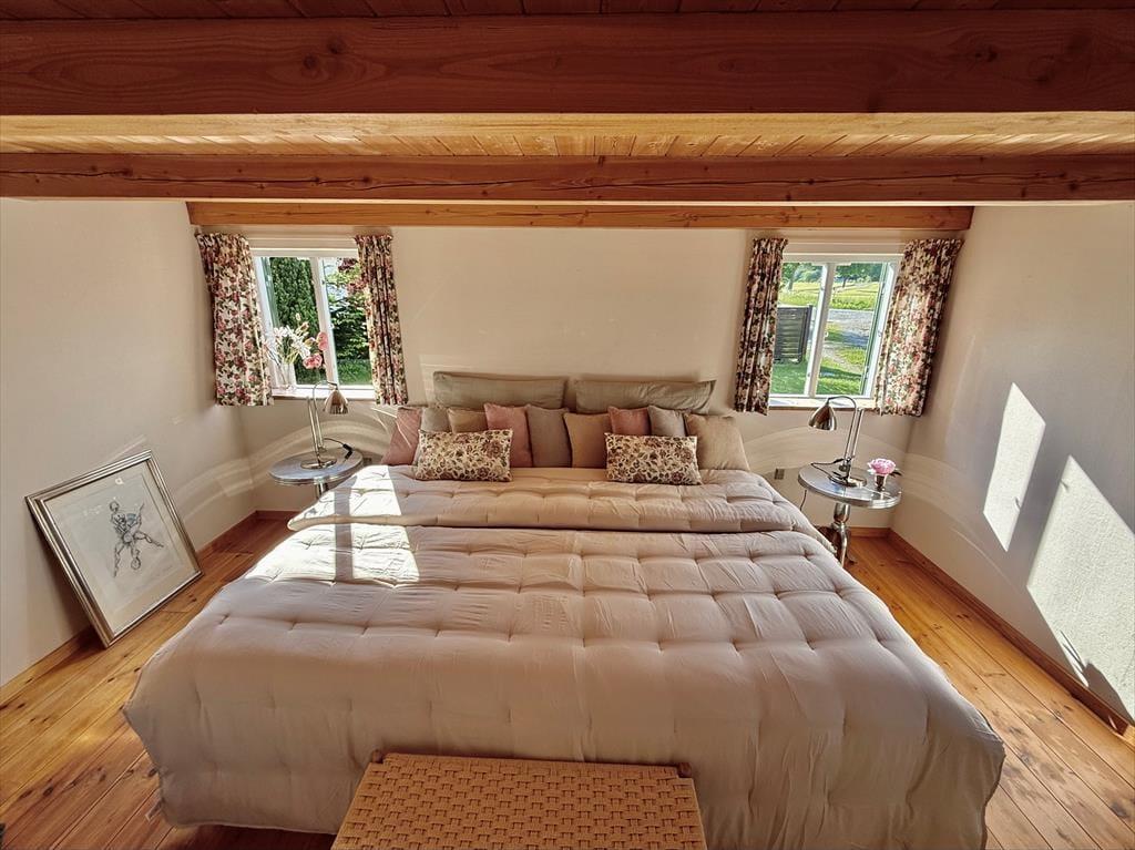 Im Erdgeschoss finden Sie ein helles und ruhiges Schlafzimmer mit einem Doppelbett – perfekt für alle, die beim Einschlafen den Rhythmus des Meeres in der Nähe hören möchten. Im ersten Stock befindet sich ein gemütliches Zimmer mit zwei Einzelbetten – ideal für Kinder oder Gäste, die mit Blick auf Himmel und Meer aufwachen möchten.