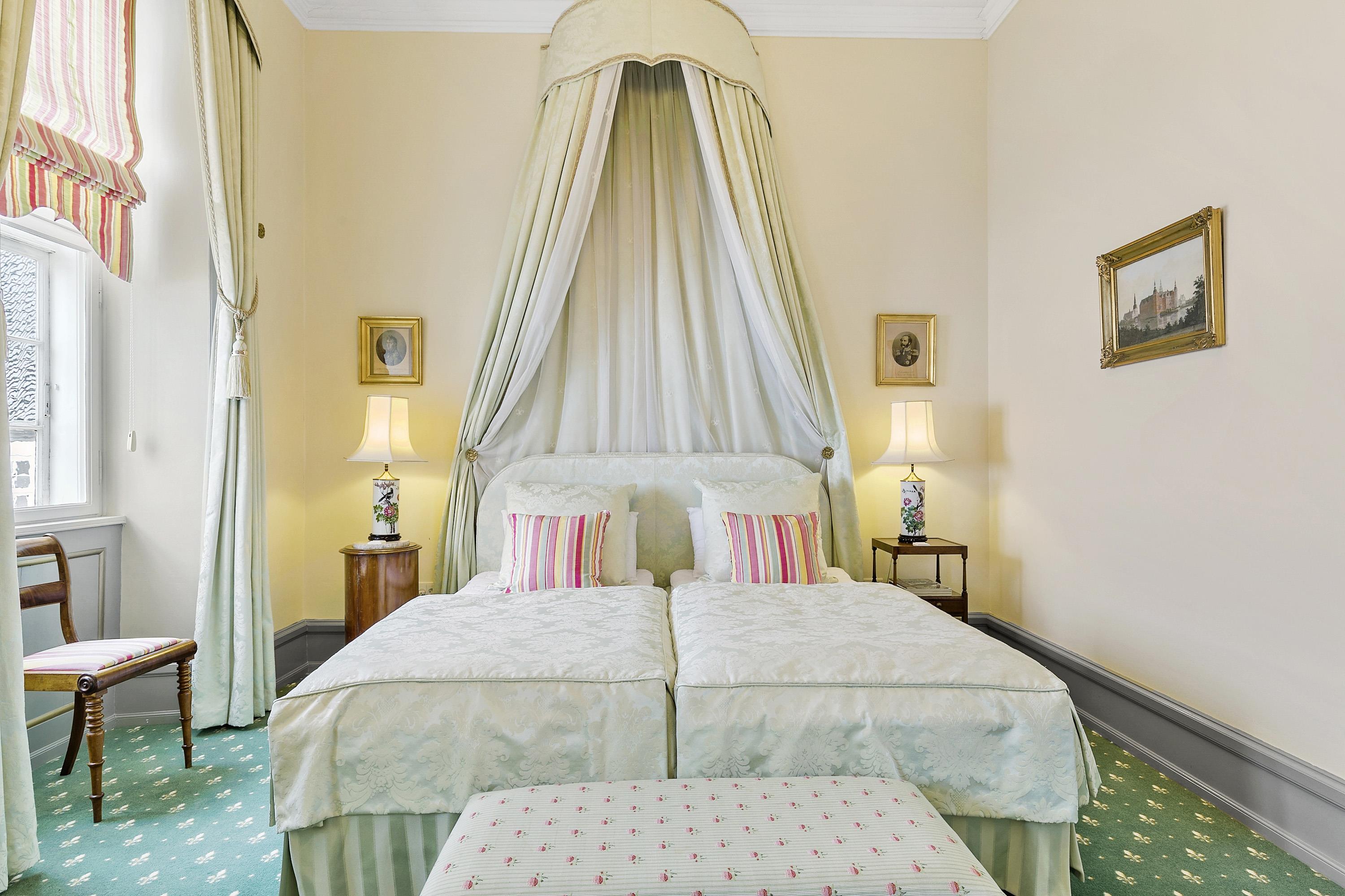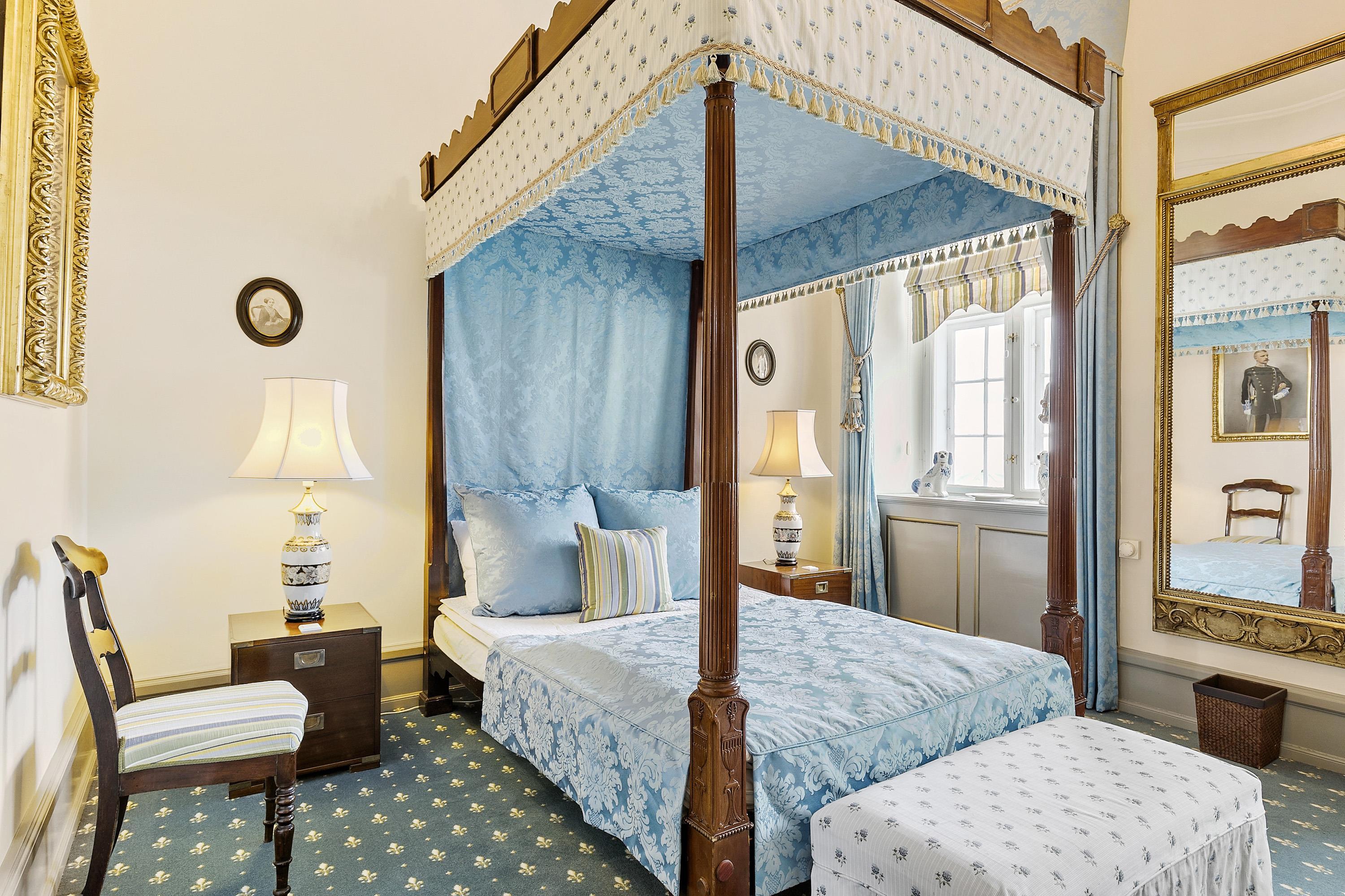 Als Gast auf Lerchenborg wohnen Sie im Südflügel des Schlosses. Dieser Teil ist exklusiv eingerichtet und enthält vier Zimmer im Erdgeschoss und vier Zimmer im ersten Stock, alle mit eigenem Badezimmer, Fernsehen und Minikühlschrank. Vom Schlafzimmerteil im Südflügel aus gelangen Sie in das möblierte Kaminzimmer, ausgestattet mit Sofagruppen und Tischarrangements. Gehen Sie einige Stufen herunter, gelangen Sie in das Schlosscafe mit Plätzen für 50 Personen. In Verbindung mit dem Schlosscafe gibt es eine große funktional eingerichtete Küche mit großem Gasherd. Das Schlosscafe steht während des Aufenthaltes zur allgemeinen Nutzung zur Verfügung. Am Südflügel gibt es ein Anbau mit fünf weiteren Schlafräumen und zwei Badezimmern.