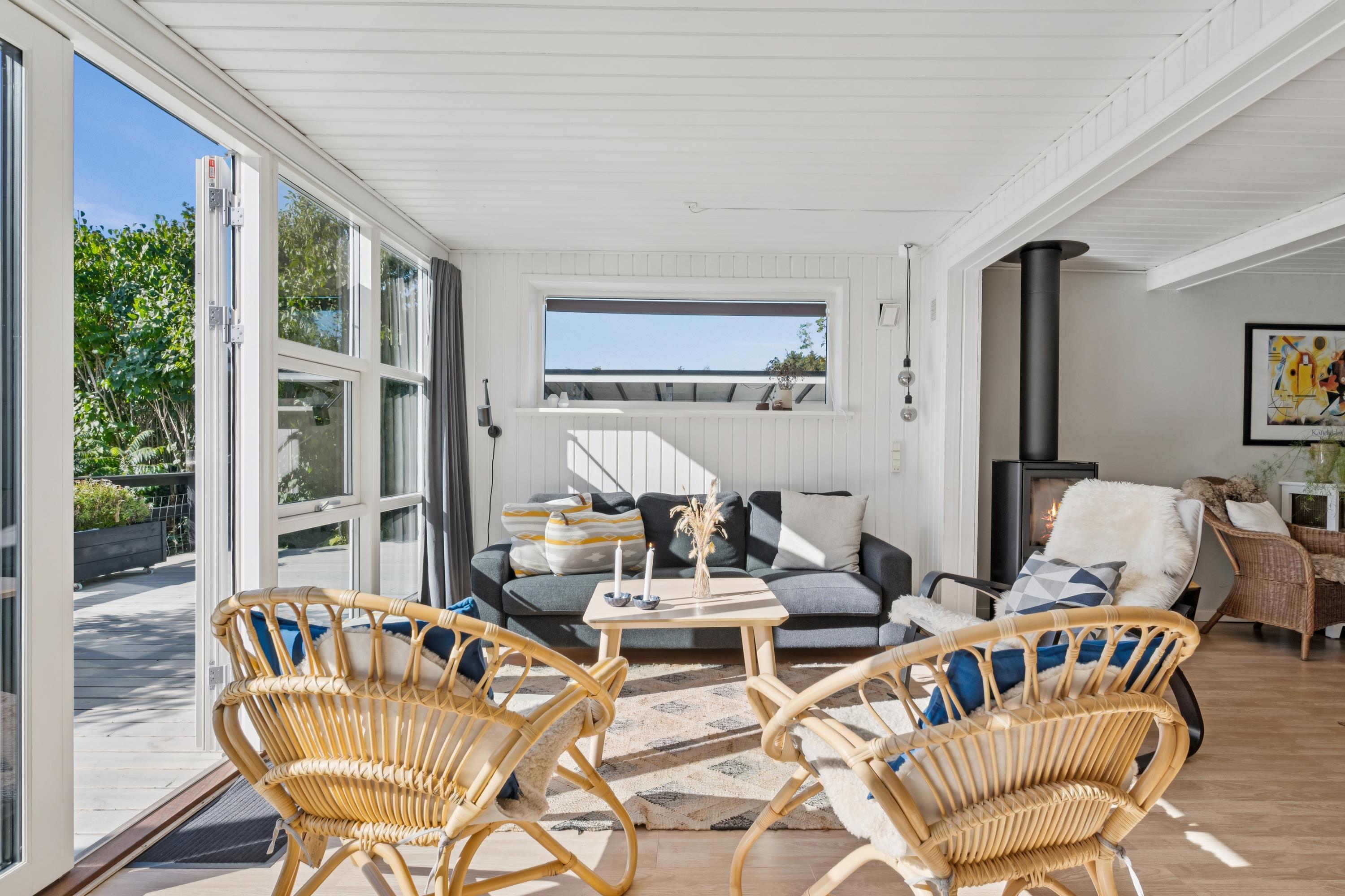 Gemütliches Ferienhaus in Vibæk Strand bei Ebeltoft mit Kaminofen, mehreren Terrassen und kinderfreundlicher Ausstattung.