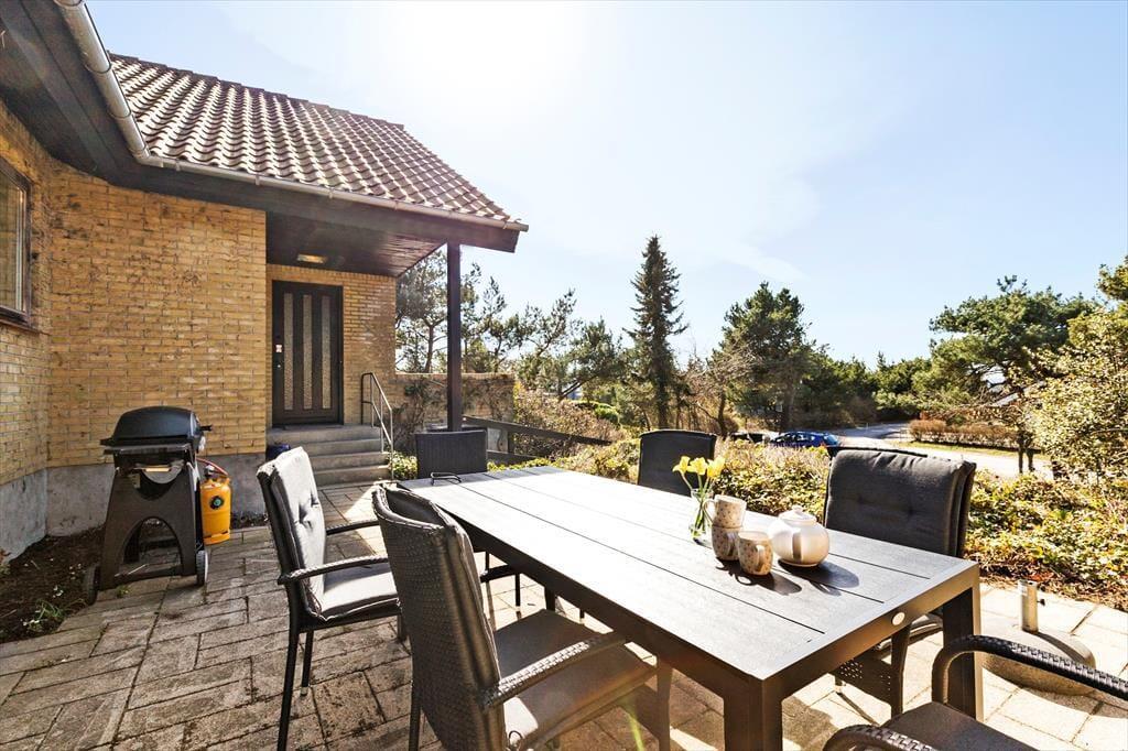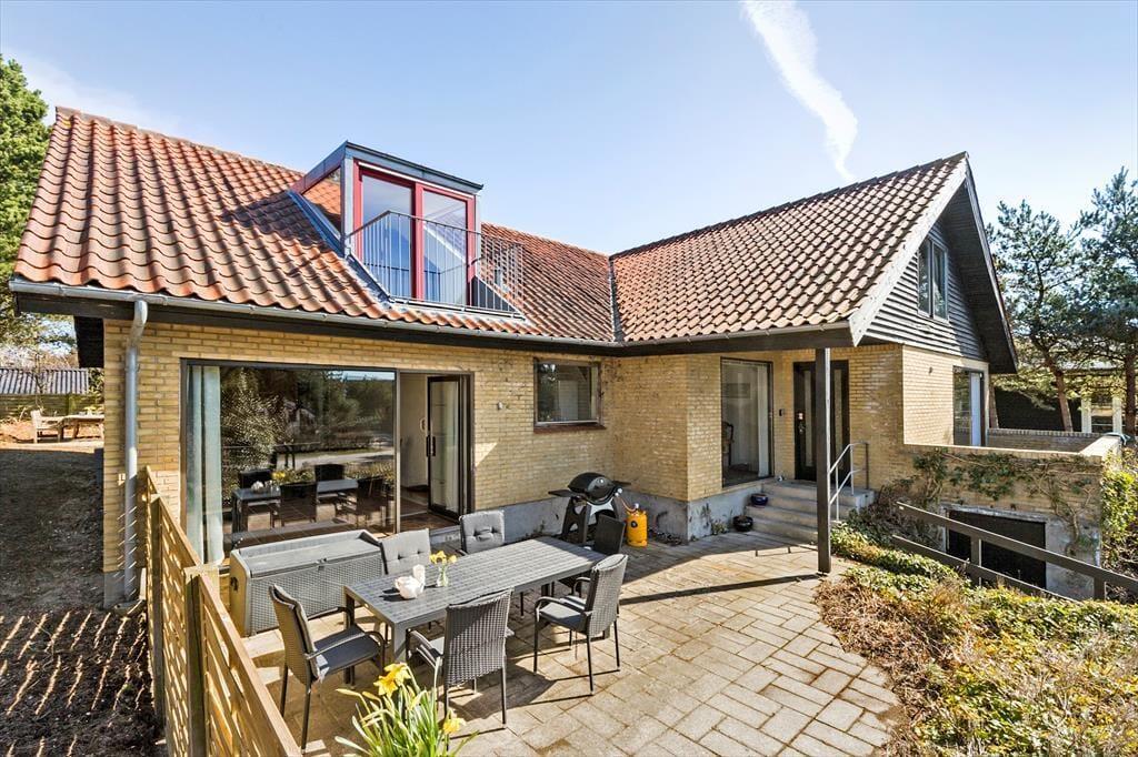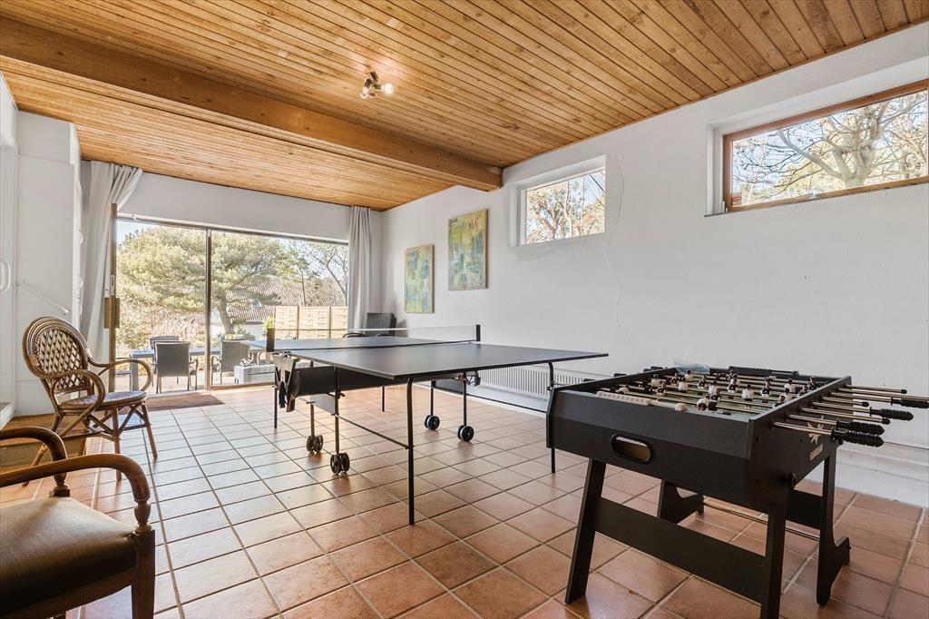 Einrichtung; Das große Aktivitätshaus mit einer Wohnfläche von 235 m² beherbergt bis zu 10 Personen. Lediglich 200 Meter trennen das Haus vom Badestrand an der Ebeltoft Vig, über dem die sogenannte Blaue Flagge weht. Die fünf großen Schlafzimmer beinhalten jeweils ein gutes Doppelbett. In einigen Zimmern können die Doppelbetten auseinandergeschoben werden. Eines der Zimmer begeistert mit seiner außergewöhnlich schönen Größe und einem Zugang zu einem Balkon mit Aussicht auf das Wasser. Ein anderes Schlafzimmer ist durch einen Vorhang vom Wohnraum getrennt. Der schöne Wohnraum verwöhnt mit einem Kaminofen, einem großen Fernseher und einem Zugang zur Terrasse. Auf jeder Etage befindet sich ein ansprechendes Badezimmer. Beide Bäder verfügen über eine Duschnische und eine Fußbodenheizung. Die helle und freundliche Küche umfasst einen Essplatz. Sie ist durch eine Glastür vom Aktivitätsraum getrennt. In diesem sorgen eine Tischtennisplatte und ein Tischkicker für Spaß und Abwechslung. Im Hauswirtschaftsraum stehen eine Waschmaschine, ein Wäschetrockner und eine Lademöglichkeit für E-Autos bereit. Zusätzlich zu den Betten und Einrichtungen im Aktivitätsraum ist das Haus mit hochwertigen Gebrauchtmöbeln ausgestattet. Falls Sie einen Urlaub mit mehr als 10 Personen planen, schauen Sie sich Haus Nr. 8408 und Haus Nr. 8409 an.