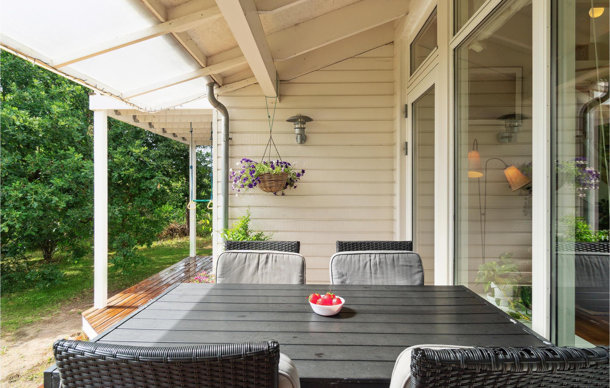 Familienfreundliches Ferienhaus nahe Vibæk Strand mit großem Garten, Veranda und Spielmöglichkeiten für Kinder.