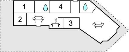 Badezimmer (nr. 1) - WC. Warmes und kaltes Wasser. Dusche