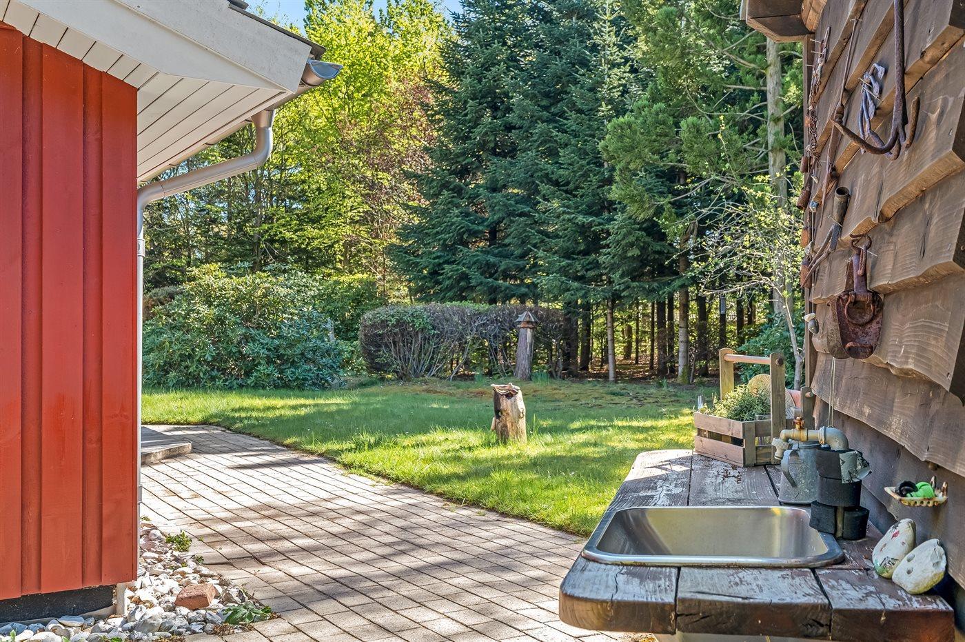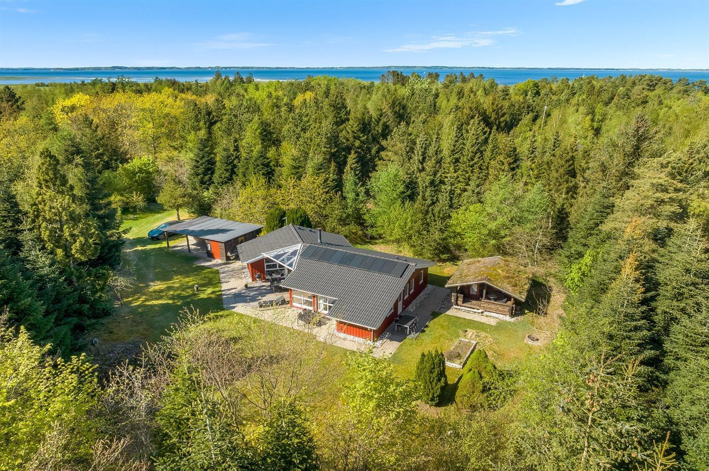 Die Ferienunterkunft liegt auf einem 3228 m² großen Gründstück, das in einem Wald/Plantage liegt. Die Entfernung zum Fjord beträgt 500 m. Die nächste Einkaufsmöglichkeit liegt 4000 m entfernt. In einem Abstand von 5000 m gibt es einen Golfplatz. Es steht ein offenes Terrassenareal zur Verfügung. Außerdem gibt es überdachte Terrasse. Geräteraum. Parkplatz auf dem Grundstück.