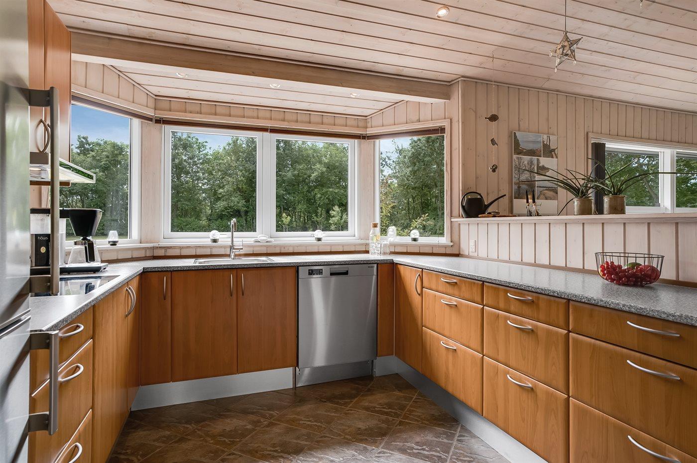 Die Ferienunterkunft liegt auf einem 2510 m² großen Naturgrundstück. Das Grundstück ist eingezäunt. Die Entfernung zum Fjord beträgt 500 m. Die nächste Einkaufsmöglichkeit liegt 1500 m entfernt. Es steht ein 80 m² Terrassenareal zur Verfügung. Außerdem gibt es 20 m² überdachte Terrasse. Geräteraum. Schaukel. Sandkasten. Es steht ein Carport zur Verfügung. Parkplatz auf dem Grundstück.
