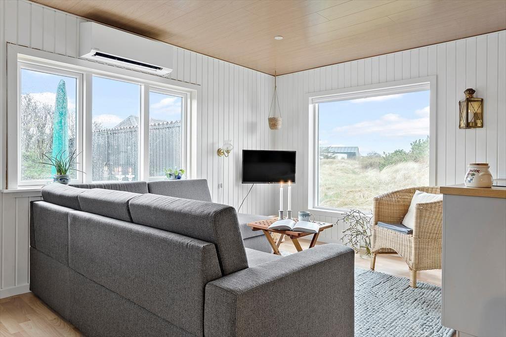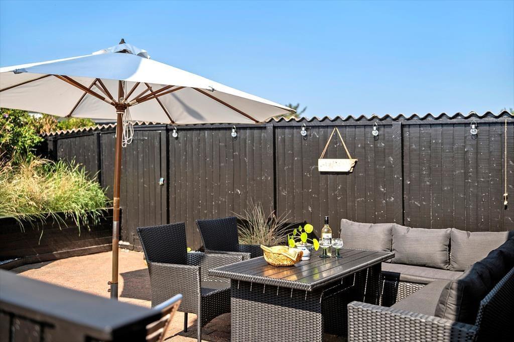 Draußen erwartet Sie ein schönes Naturgrundstück, das Ruhe und Privatsphäre bietet. Die gemütliche Terrasse lädt zu vielen Stunden im Freien ein – vom Morgenkaffee in der Sonne mit Vogelgezwitscher bis hin zum entspannten Grillabend. Kinder können unbeschwert spielen, während die Erwachsenen die Ruhe und das umliegende Dünenland genießen, das so typisch für Vorupør und den Nationalpark Thy ist. Hier können Sie den Alltagsstress hinter sich lassen und ganz in der Natur aufgehen.