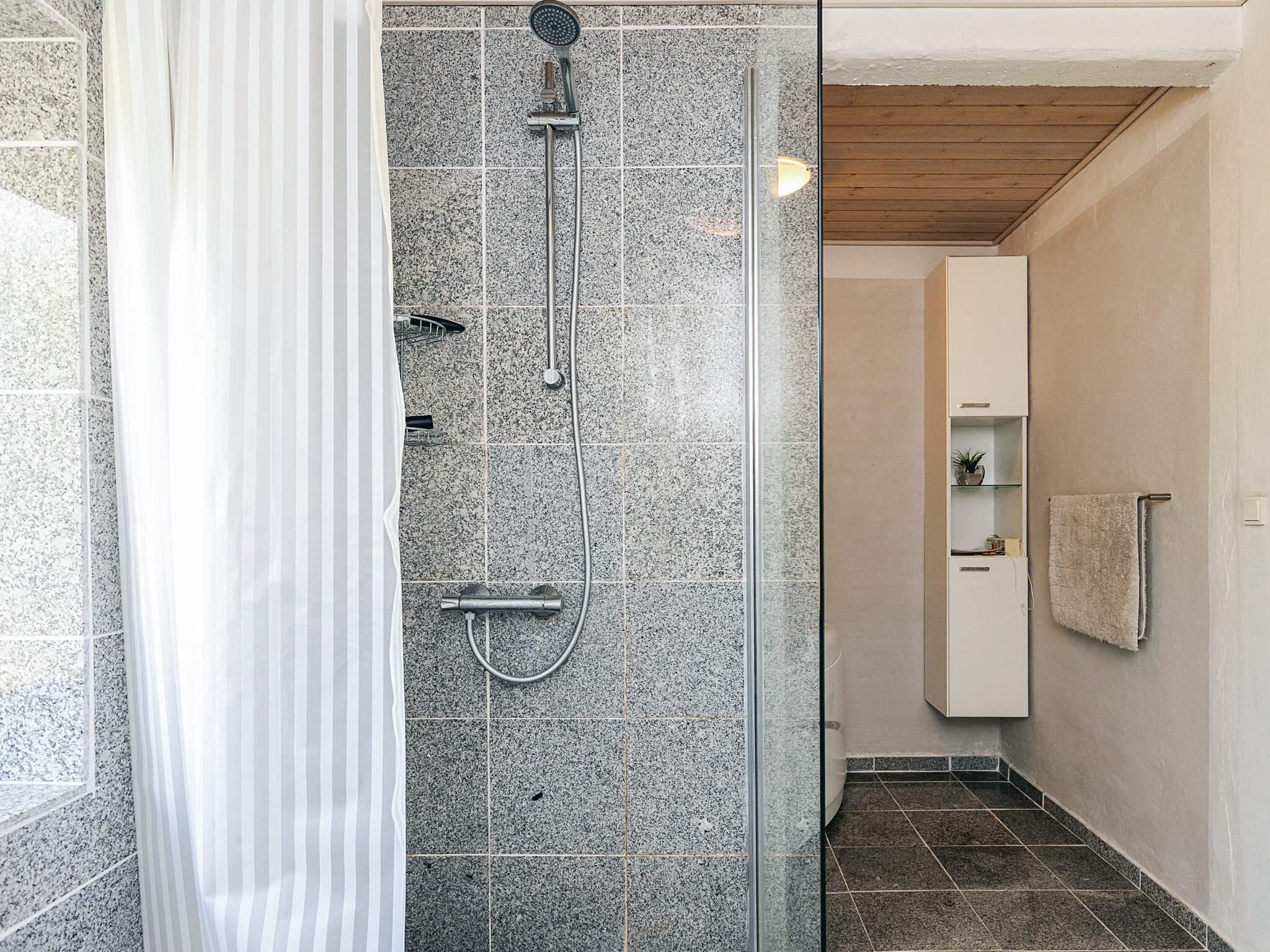 Bad: WC, Waschb., Dusche, Fußbodenheiz.