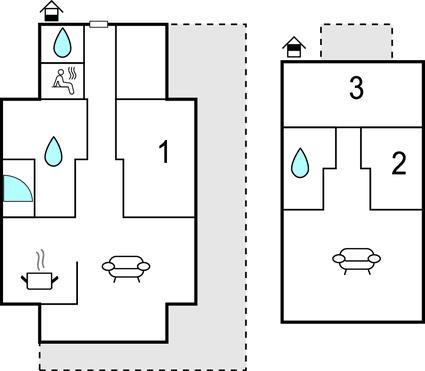 Badezimmer (nr. 1) - WC. Warmes und kaltes Wasser. Dusche