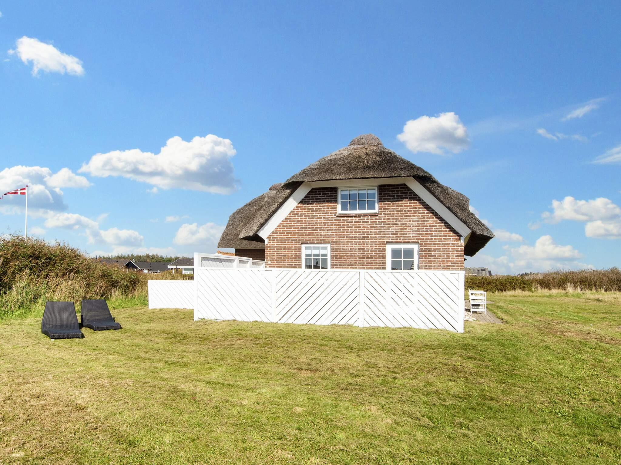 Nur ca. 300 m von dem breiten Nordseestrand entfernt liegt dieses gepflegte, 119 m² große und reetgedeckte Ferienhaus auf einem 2800 m² großen Naturgrundstück. Aufgrund der Einrichtung eignet sich das Haus auch für zwei oder mehrere Familien, denn es gibt insgesamt vier Schlafzimmer, zwei Badezimmer (eins mit Whirlpool und Sauna), eine Küche mit Geschirrspüler, ein verwinkeltes Wohnzimmer mit Holzofen, Stereoanlage, Fernseher mit SAT-Empfang, und direktem Zugang zu der geschlossenen Terrasse. Als zusätzliche Wärmequelle wurde eine Wärmepumpe installiert.