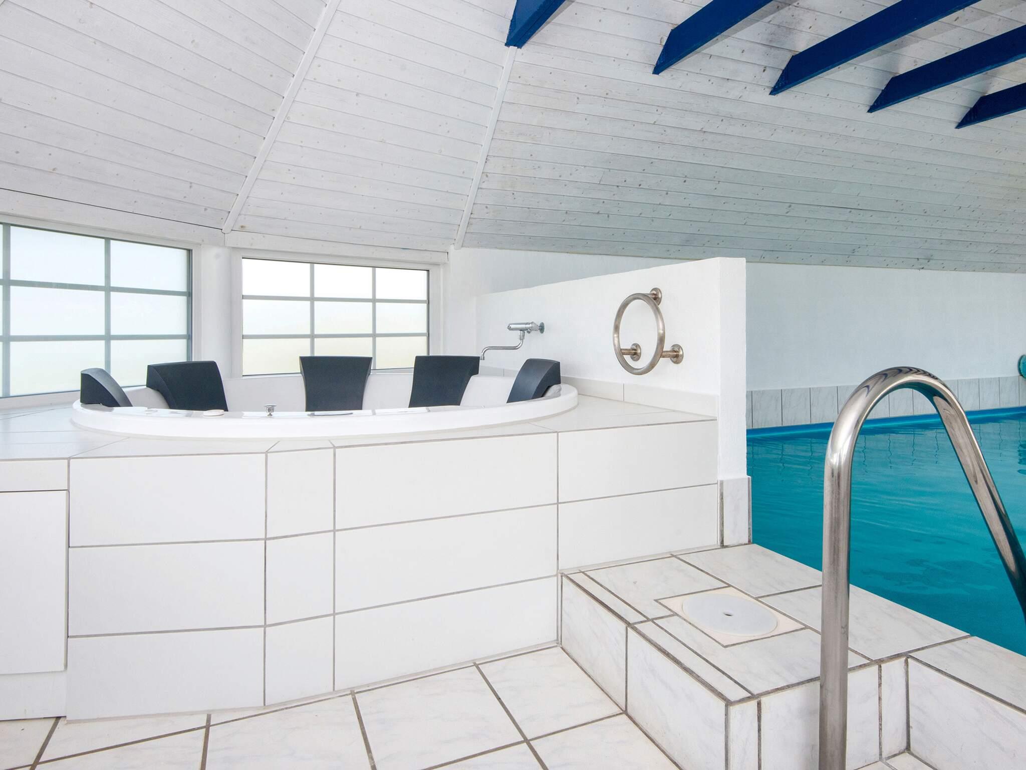 Der große Poolbereich sorgt für Badespaß mit der ganzen Familie. Im Poolraum gibt es auch ein Radio mit CD-Spieler zur musikalischen Unterhaltung. Zudem stehen im Haus Sauna und Whirlpool für erholsame Stunden bereit.