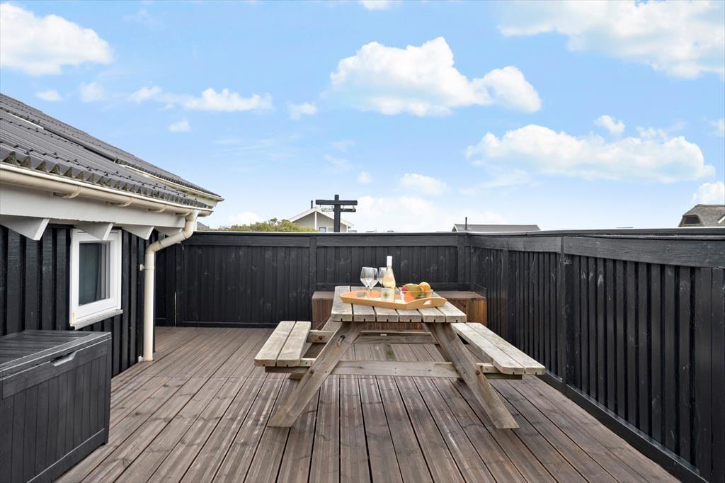 Die große Terrasse, die teilweise überdacht ist, bietet dir die Möglichkeit, das Leben im Freien bei jedem Wetter zu genießen. Hier kannst du deinen Morgenkaffee in der Sonne trinken, windgeschützt zu Mittag essen oder die langen, hellen Sommerabende beim Grillen ausklingen lassen. Im Garten finden die Kinder schnell ihren Weg zur Schaukel und zum Sandkasten, während die Erwachsenen eine ruhige Ecke mit Blick auf Himmel und Dünen entdecken können. Der Duft des Meeres erinnert dich ständig daran, wie nah du am Strand bist – und wenn du Lust auf ein Abend Bad oder einen Spaziergang am Wasser bekommst, sind es nur 100 Meter bis zur Küste.
