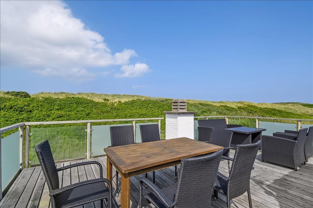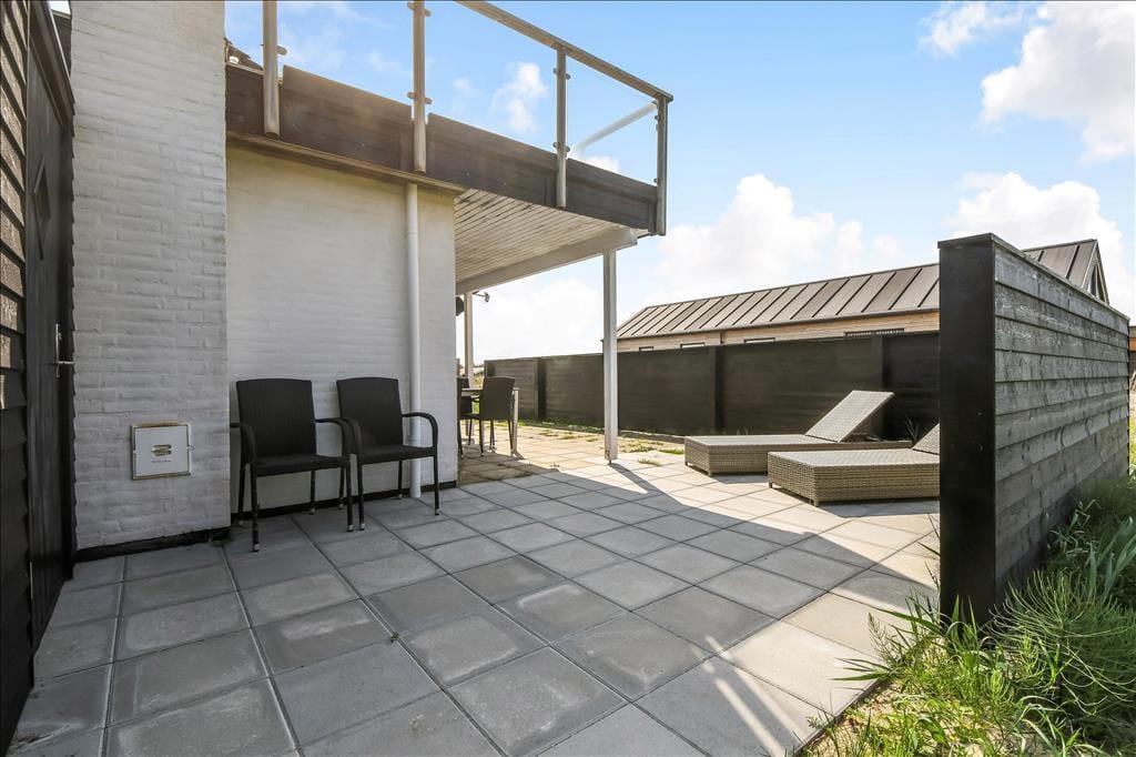 Die Außenbereiche stehen den Innenräumen in nichts nach. Genieße die Morgensonne mit einer Tasse Kaffee auf der Terrasse, lass die Kinder im Garten spielen oder spaziere nur ein paar Schritte zu den Dünen, um den Sand unter den Füßen zu spüren. Die schönen Außenflächen rund ums Haus laden zu Entspannung und Spiel ein, und das große Grundstück bietet reichlich Platz für Ballspiele oder ruhige Stunden mit Blick auf das friedliche Ferienhausgebiet. Die Terrasse – teilweise überdacht – ermöglicht dir, das Leben im Freien bei Sonne oder im Schatten zu genießen. Ideal für ein ausgiebiges Mittagessen an der frischen Luft oder gemütliche Abende unter freiem Himmel. Die frische Meeresluft, das sanfte Rauschen der Wellen und der Duft von Strandhafer schaffen die ganz besondere Stimmung, wie sie nur ein Ferienhaus in Meeresnähe bieten kann.