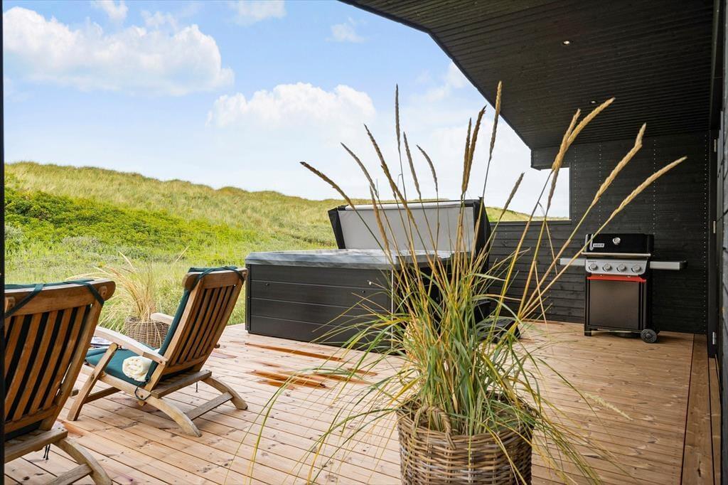 Das Ferienhaus wurde so gestaltet, dass es das Leben im Freien maximiert. Die große Holzterrasse nach Süden ist der perfekte Ort, um den ganzen Tag die Sonne zu genießen. Es gibt auch eine überdachte Terrasse, auf der Sie sich entspannen können, selbst wenn das Wetter etwas unbeständiger ist. Wenn Sie sich verwöhnen möchten, können Sie ein entspannendes Bad im Outdoor-Whirlpool nehmen, der mit Blick auf die beeindruckenden Dünen positioniert ist. Diese private Oase gibt Ihnen die Möglichkeit, sowohl Sonnenuntergänge als auch den Sternenhimmel in absoluter Ruhe und Frieden zu genießen. Der Garten ist sorgfältig angelegt und bietet sowohl Kindern als auch Erwachsenen die Möglichkeit, die schöne Natur rund um das Ferienhaus zu genießen.