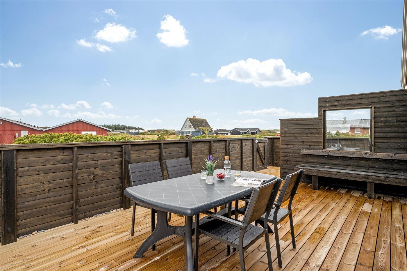 Die Ferienunterkunft liegt auf einem 2567 m² großen Dünengrundstück nicht weit vom Meer entfernt. Die nächste Einkaufsmöglichkeit liegt 1000 m entfernt. Es steht ein großes offenes Terrassenareal zur Verfügung, wo man sich vor dem Wind geschützt und im Schatten aufhalten kann. Es steht ein Schuppen zur Verfügung und man kann beim Ferienhaus parken.