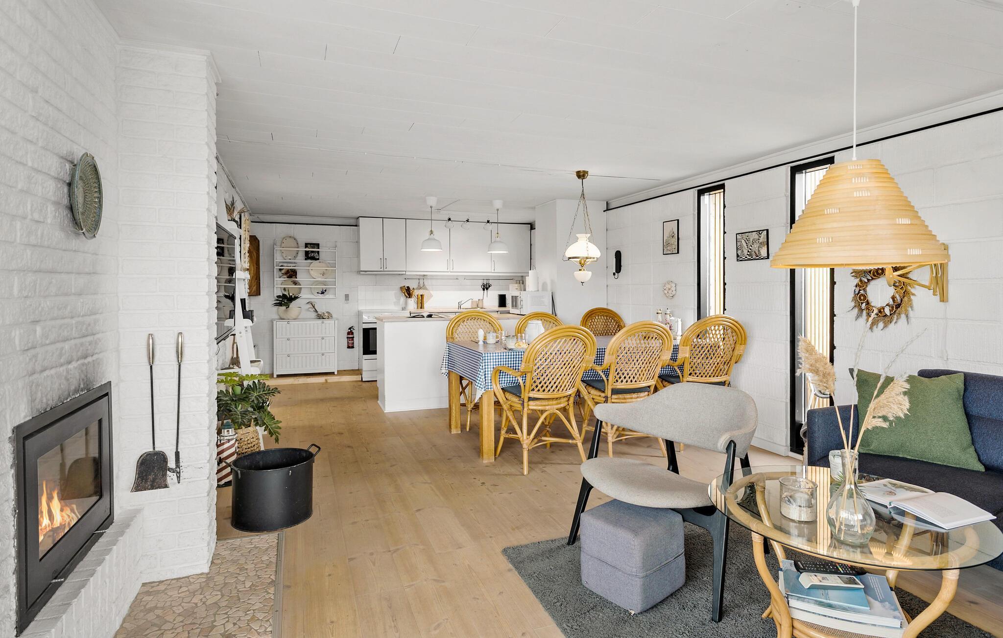 Verbringen Sie entspannte Tage in diesem einladenden Ferienhaus, eingebettet zwischen Dünen und nur einen Katzensprung vom Nordseestrand entfernt. Lassen Sie den Alltag hinter sich und genießen Sie die offene, heimelige Atmosphäre des Wohnraums mit gemütlicher Sofaecke, Fernseher und Kaminofen. Setzen Sie sich mit einem Buch ans Fenster, lauschen Sie dem Feuer oder verweilen Sie einfach auf dem Sofa. Die helle, offene Küche und der angrenzende Esstisch bieten gute Voraussetzungen für gemeinsame Mahlzeiten.